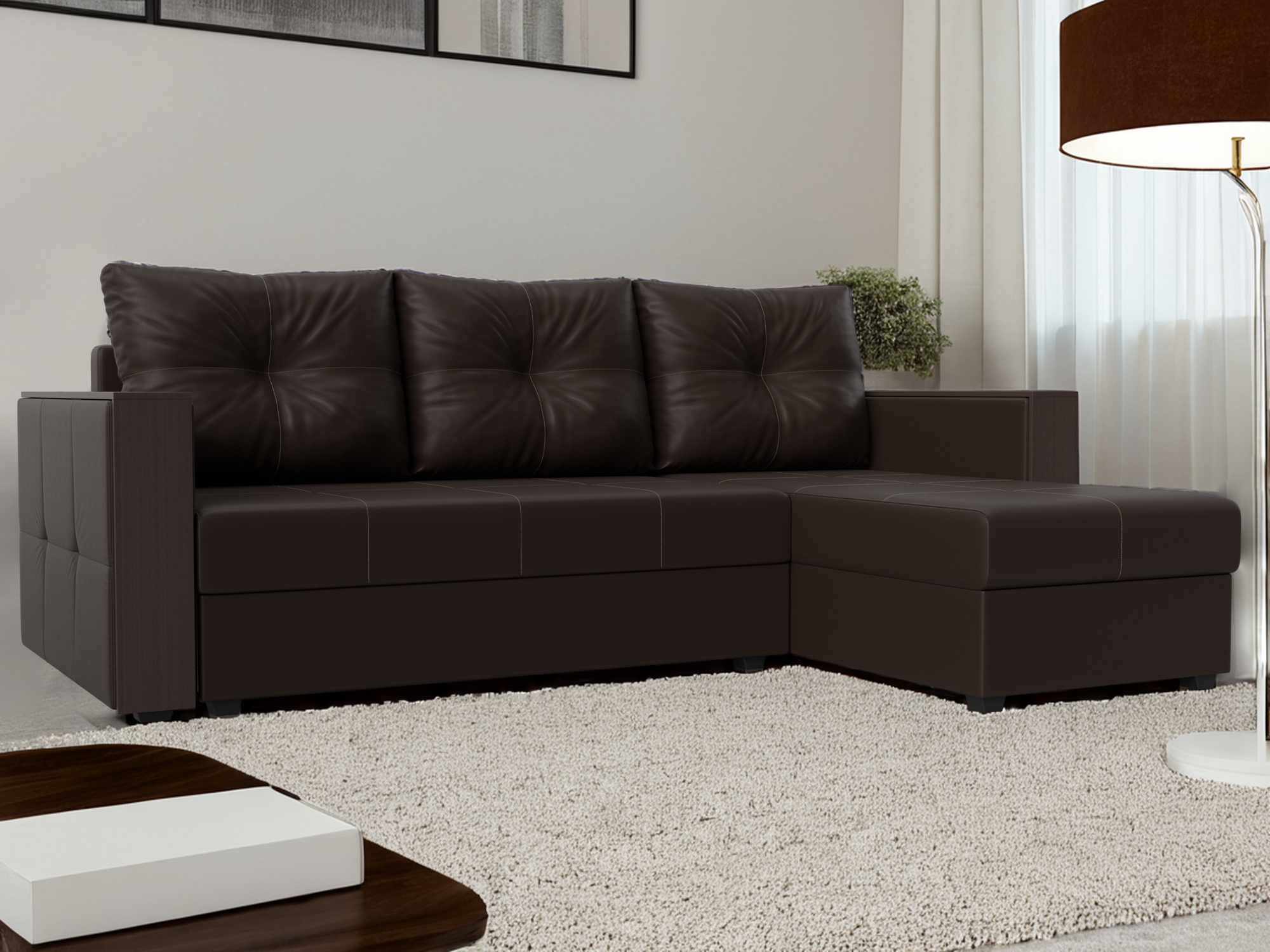 Угловой диван Валенсия Лайт правый угол, экокожа (Коричневый) Код I0000364049