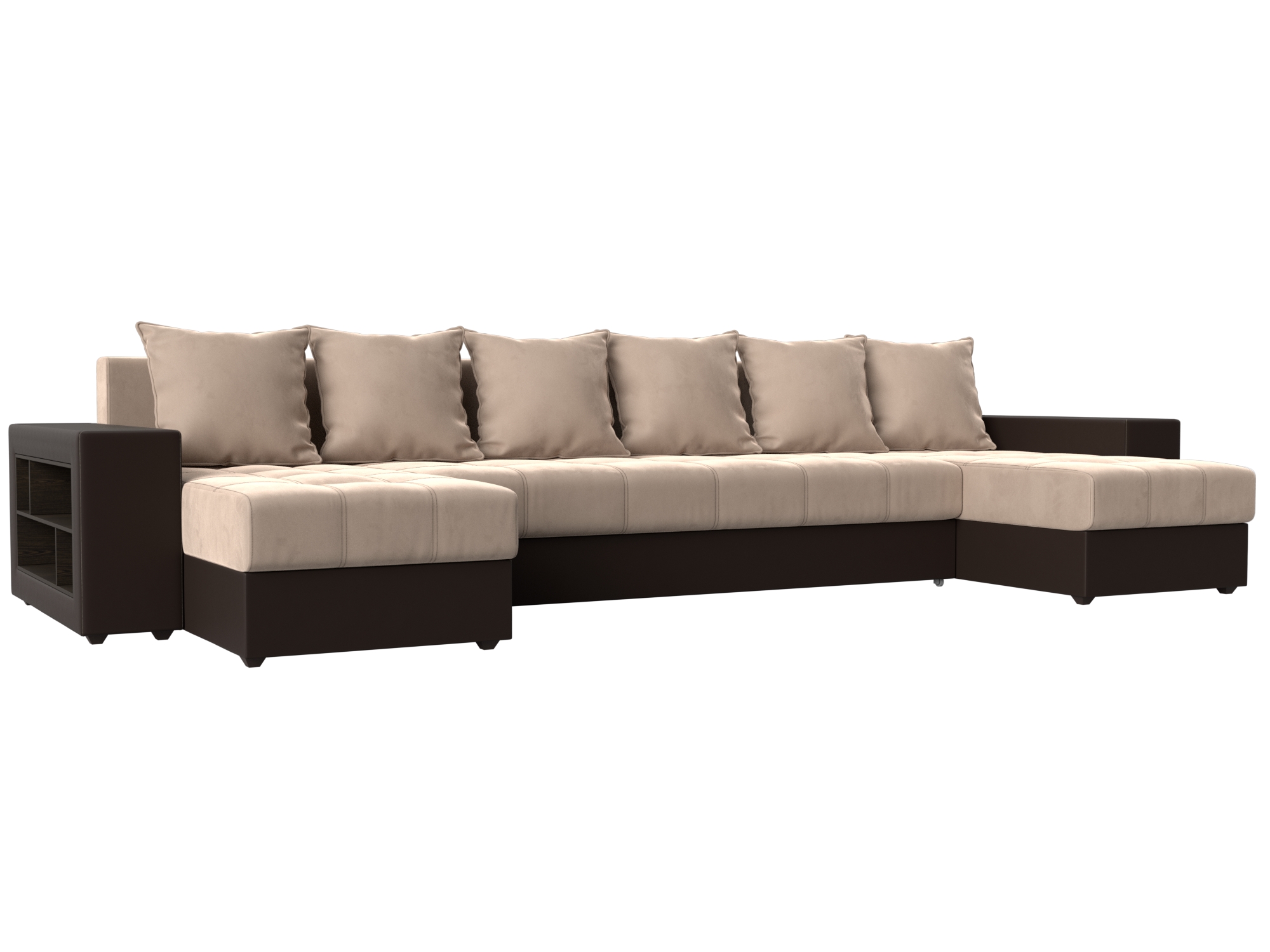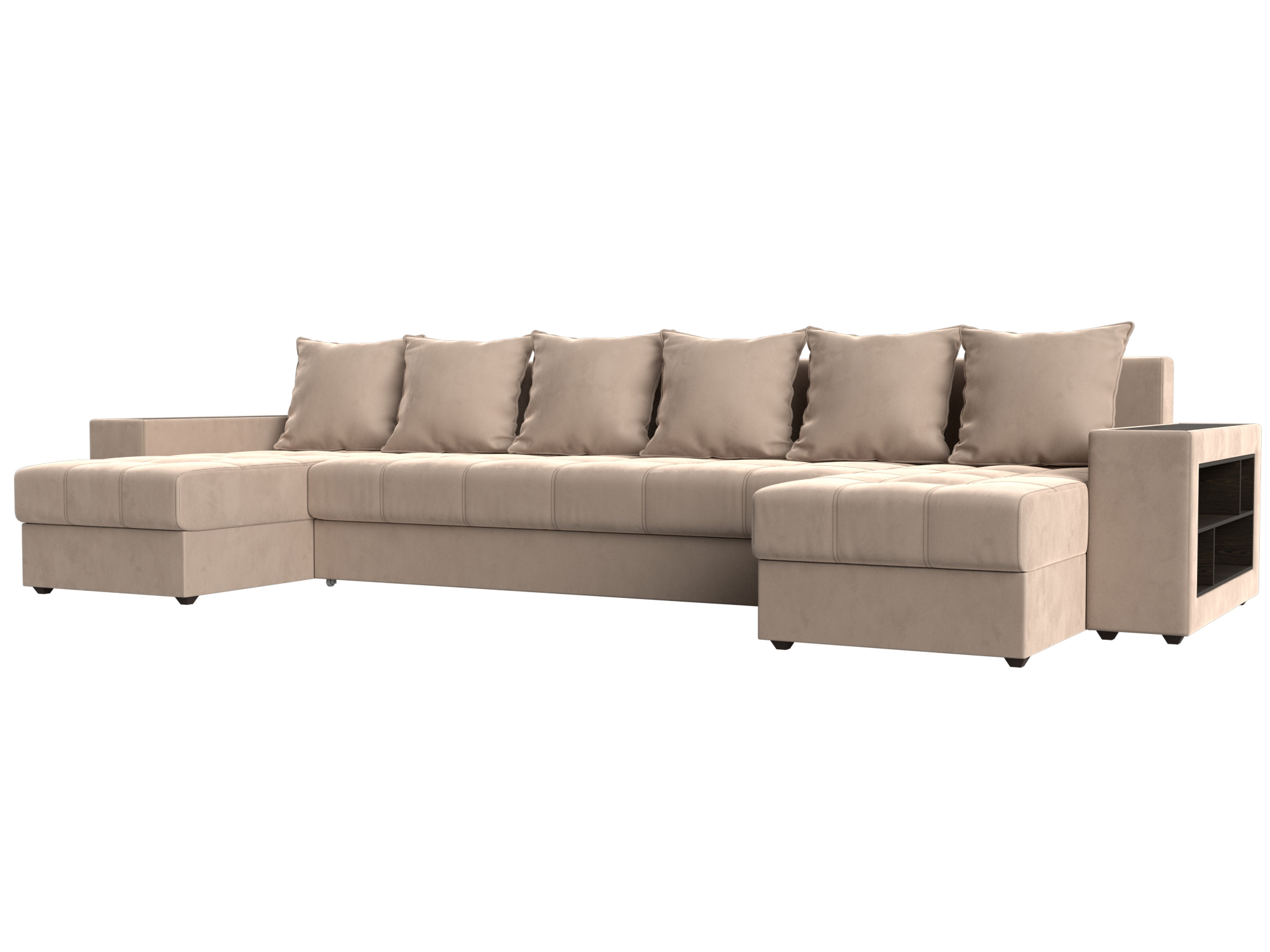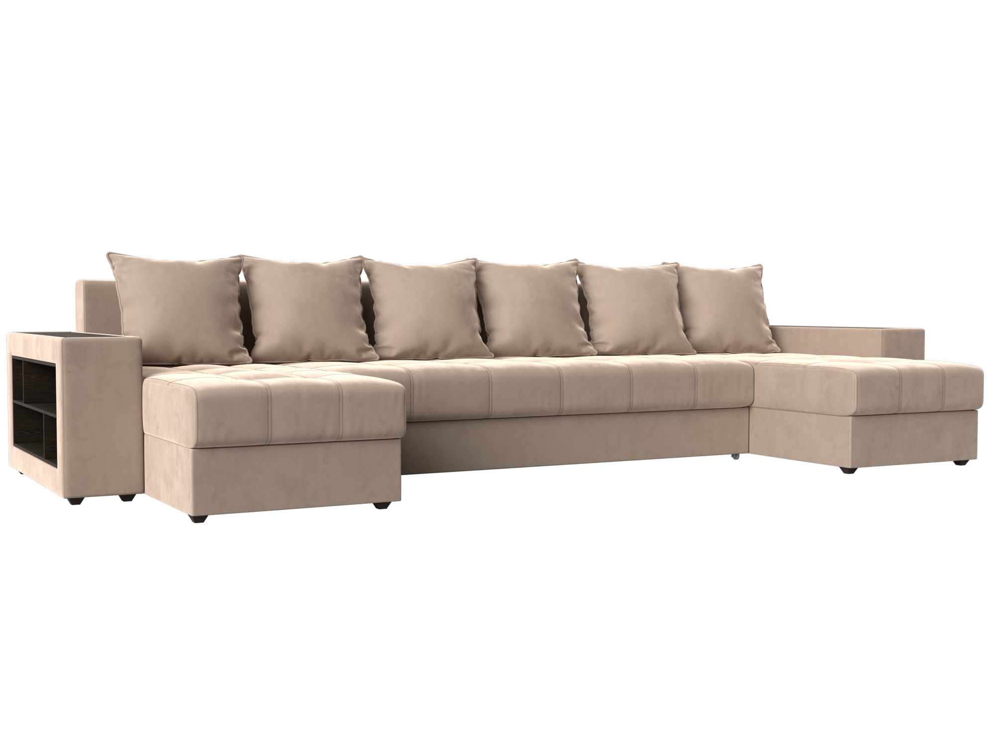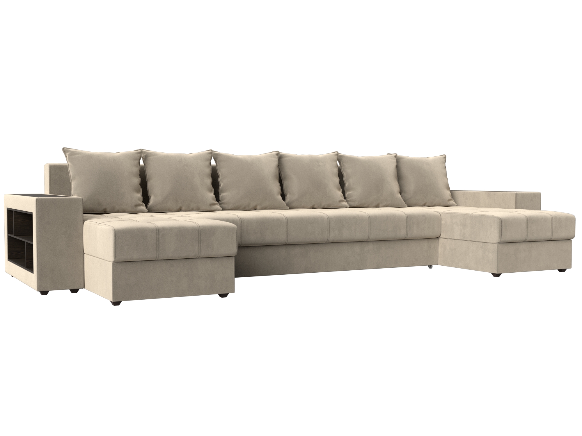 Шикарный угловой диван Брюссель удобен и функционален в использовании. Подлокотники выполняют роль мини-столиков. Одна из боковин дополнена книжными полками, декорированным «под дерево». Под длинной боковиной расположена ниша для белья. Изделие оснащено удобным механизмом трансформации в двуспальную кровать.