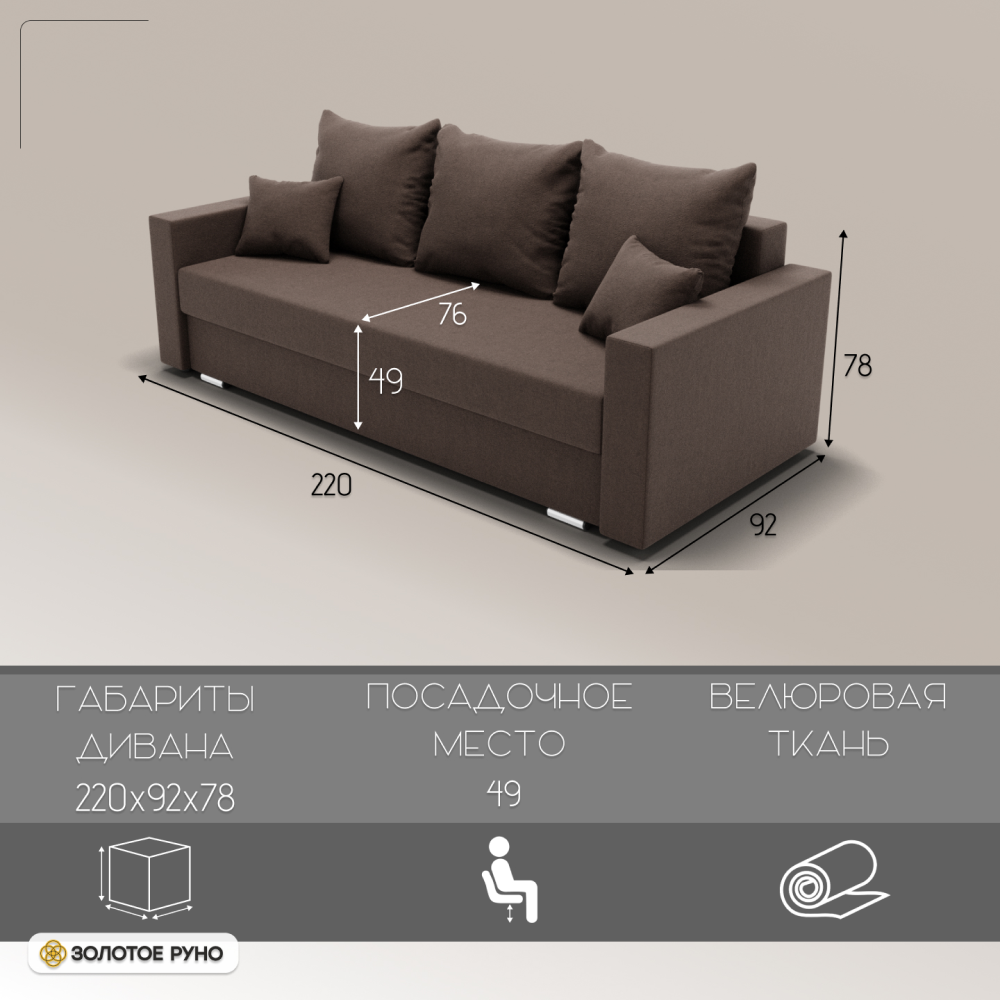 Отзывы о Столплит Прямой диван Олимп-1 ПБ, велюр Коричневый
