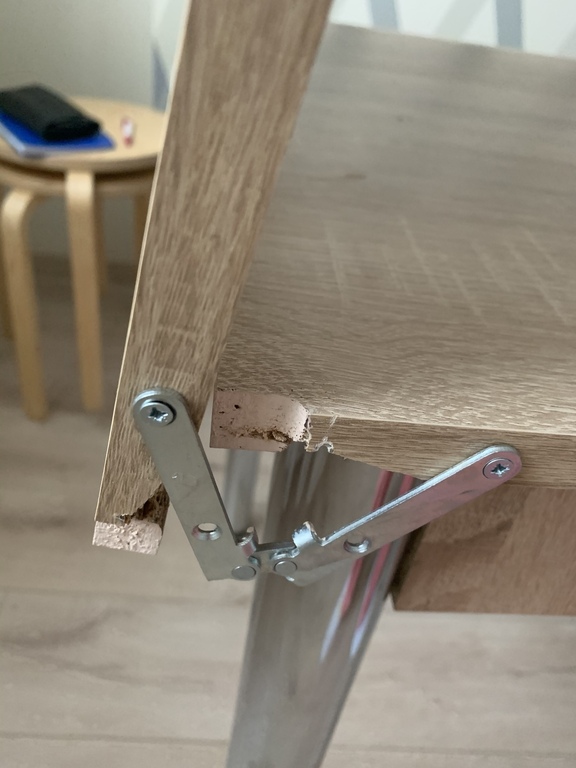 Как и у многих раскладных, в разложенном виде центр играет, встает горкой. Качество покрытия плохое, не для кухонных столов. Вздувается кромка и даже на ровном покрытии может вздуться бугорок, что явно указывает на плохое его покрытие.