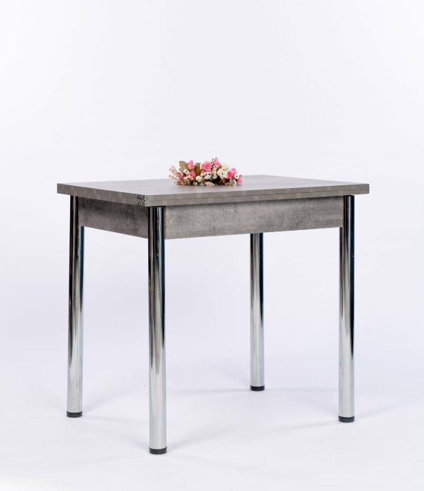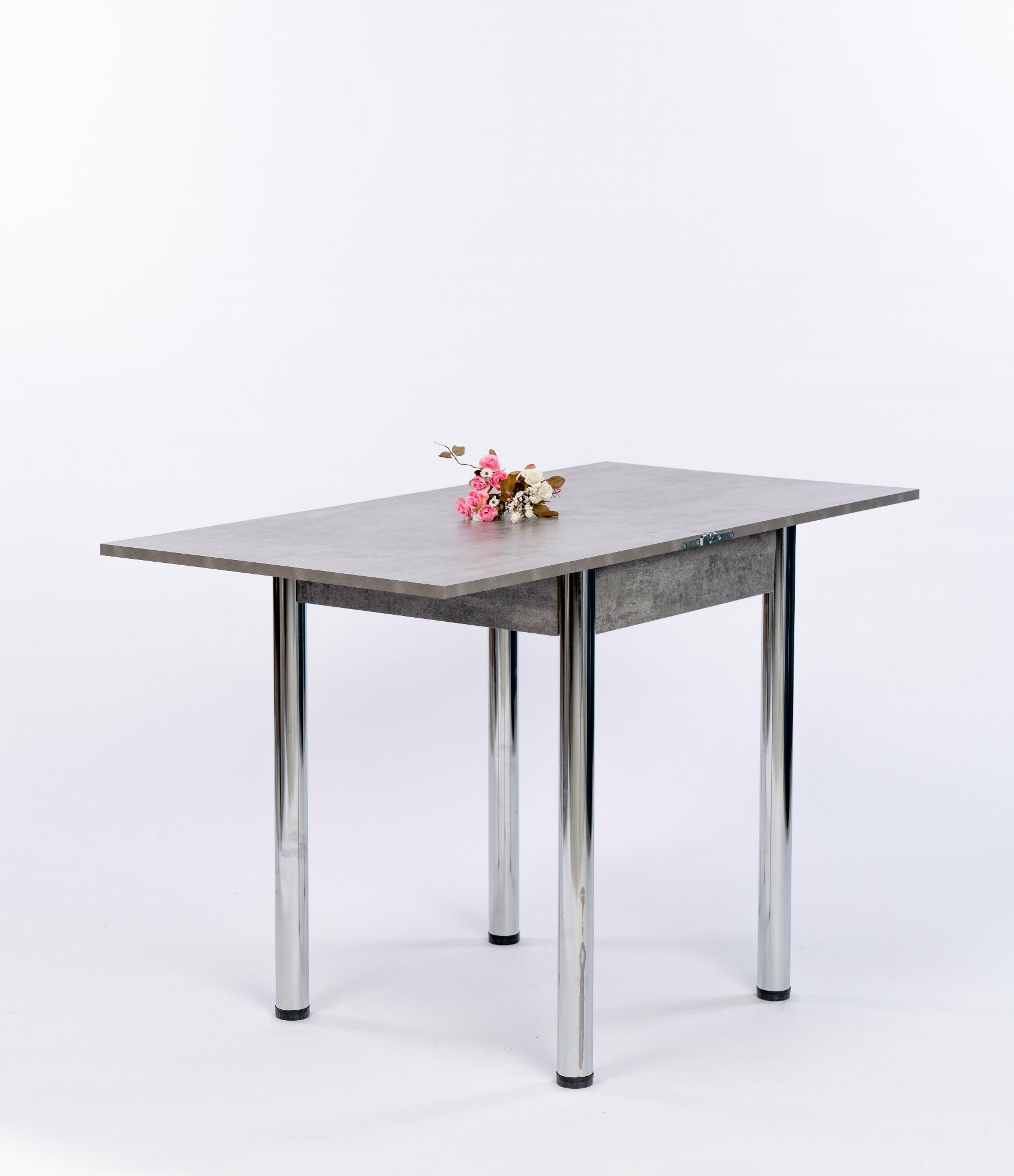 Стол обеденный раскладной изготовлен из ЛДСП на Хромированных ножках.,отичается простотой применения и сборки.Небольшой размер:60*80*750 в сложенном виде и 8000*1200*750 в разложенном виде,позволяет разместить даже на самой маленькой кухне.