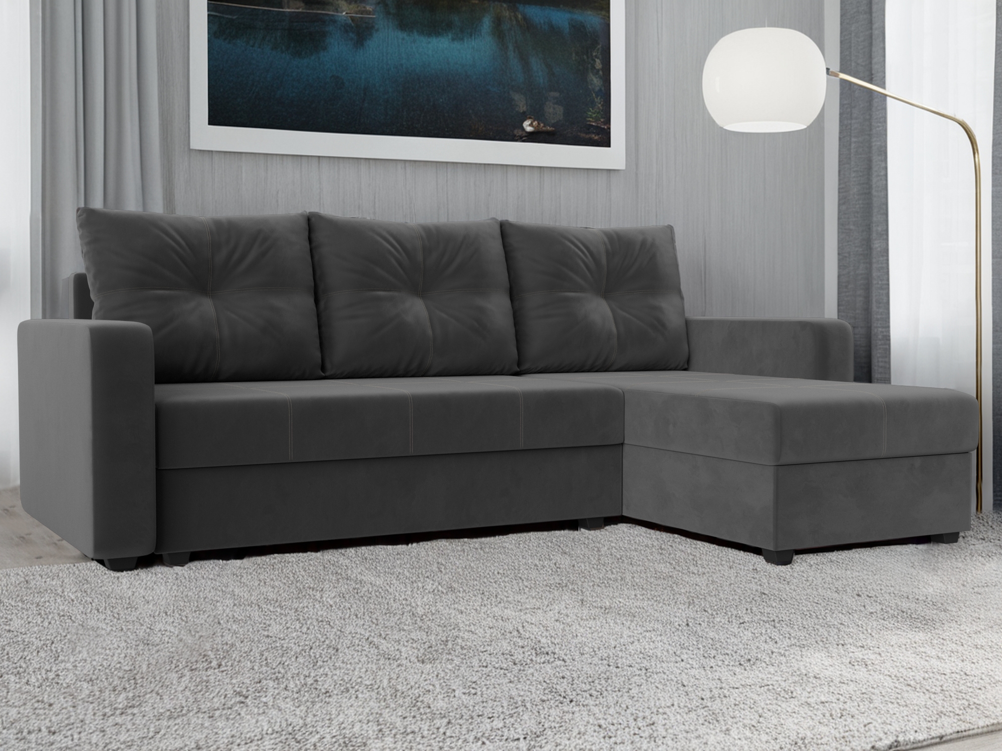 Отзывы о Столплит Угловой диван Ливерпуль Лайт правый угол, велюр Серый