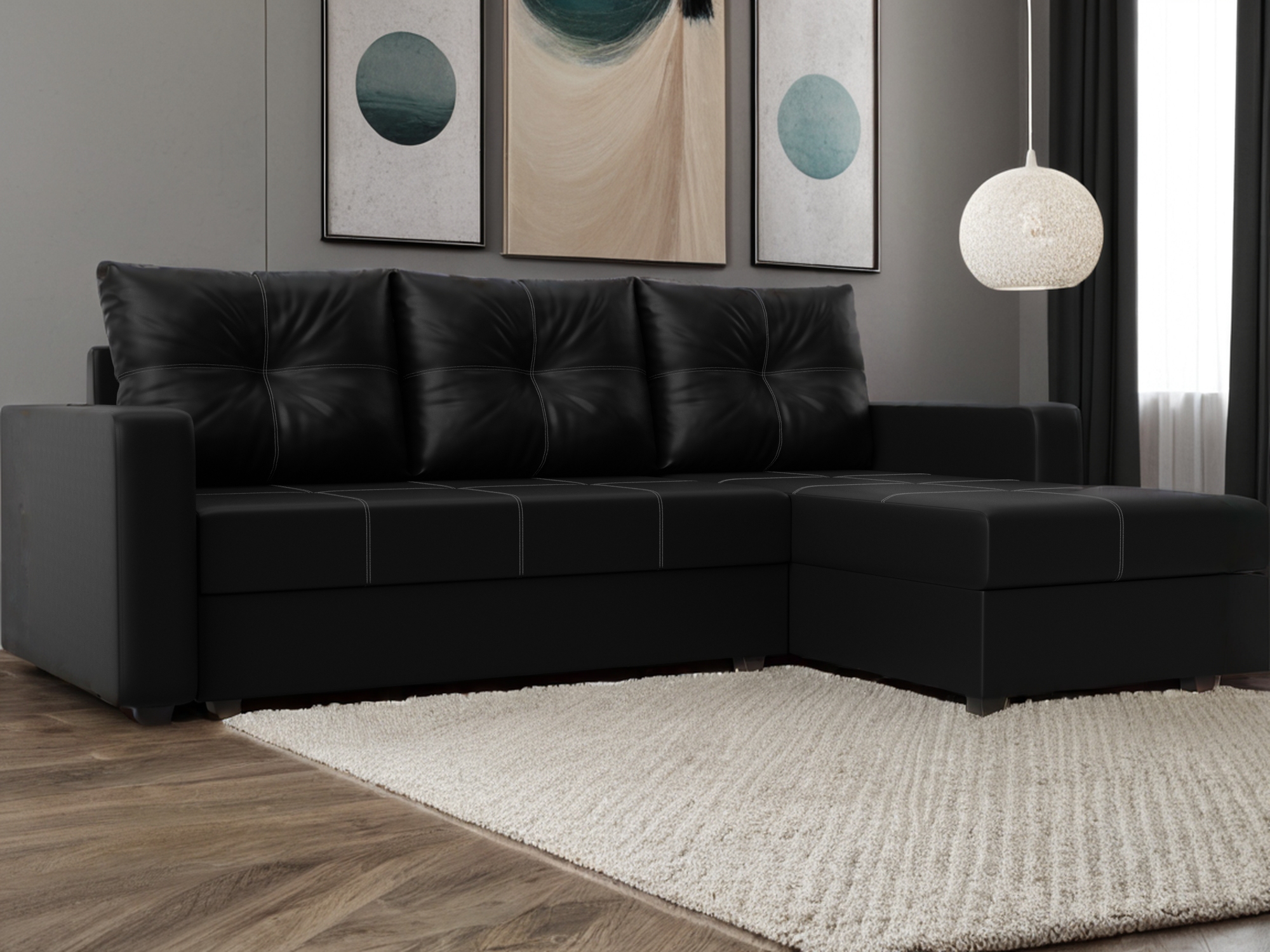 Отзывы о Столплит Угловой диван Ливерпуль Лайт правый угол, экокожа Черный