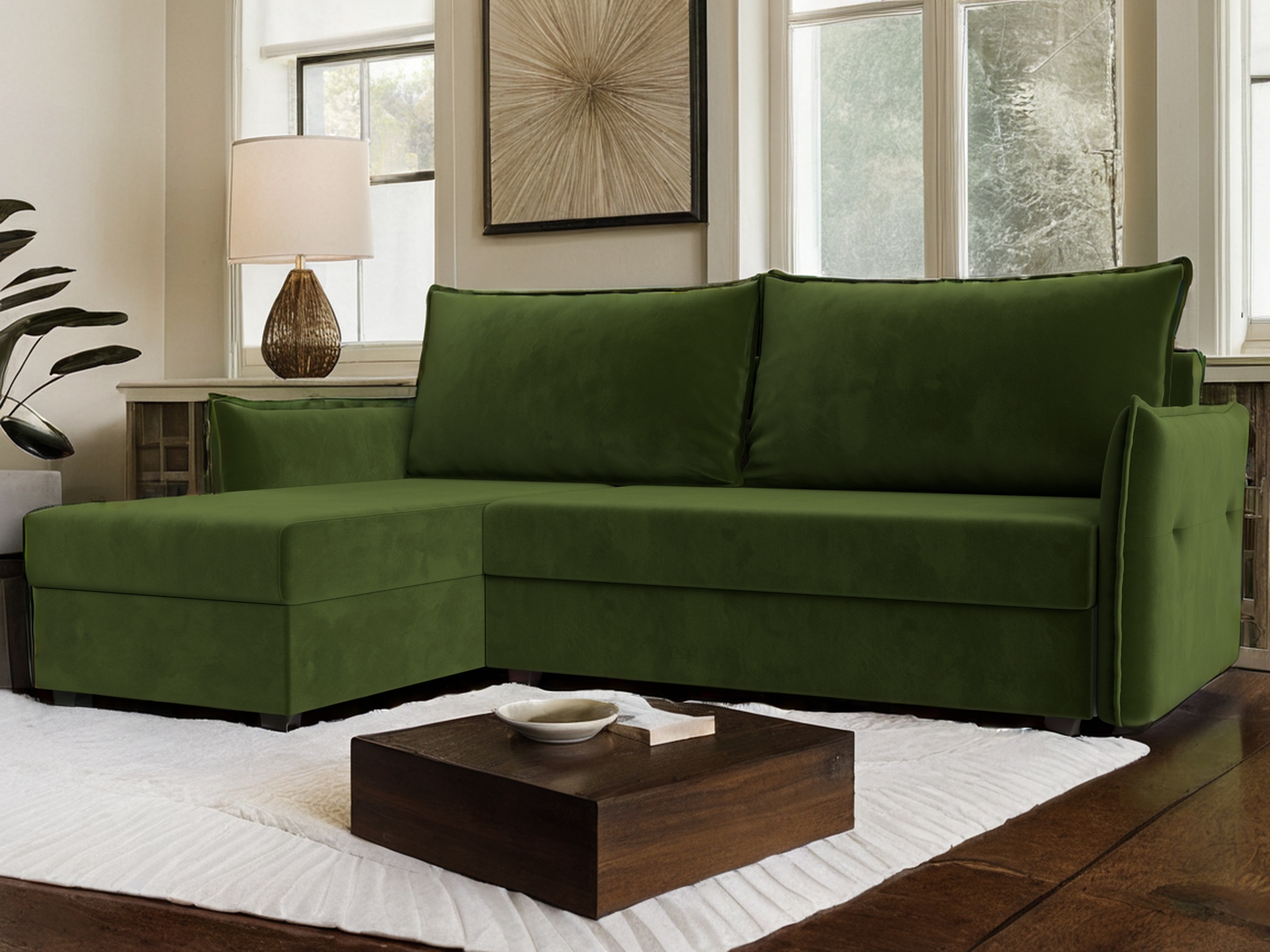 Отзывы о Столплит Угловой диван Лига-004 левый угол, микровельвет Зеленый