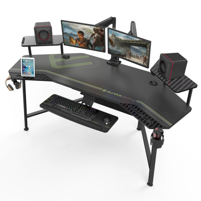 Eureka Gaming учитывает ваши различные потребности, поэтому вы можете сосредоточиться на таких важных вещах, как учеба, работа, игры или отдых. Стол Eureka AED-70B имеет широкую столешницу с поверхностью в стиле "карбон", что позволяет разместить на столе несколько игровых мониторов, Xbox, PS4 и другие ваши игровые девайсы. Входящая в комплект подставка для клавиатуры, подставка для монитора, подстаканник, крючок для наушников, подставка для контроллера и система управления кабелями позволяют освободить больше полезного места на столе. Благодаря специальной системе управления кабелями, на вашем столе никогда не будет лишних проводов. Столешница оснащена несколькими слотами для укладки кабелей под столом, освобождая пространство для игровых девайсов..