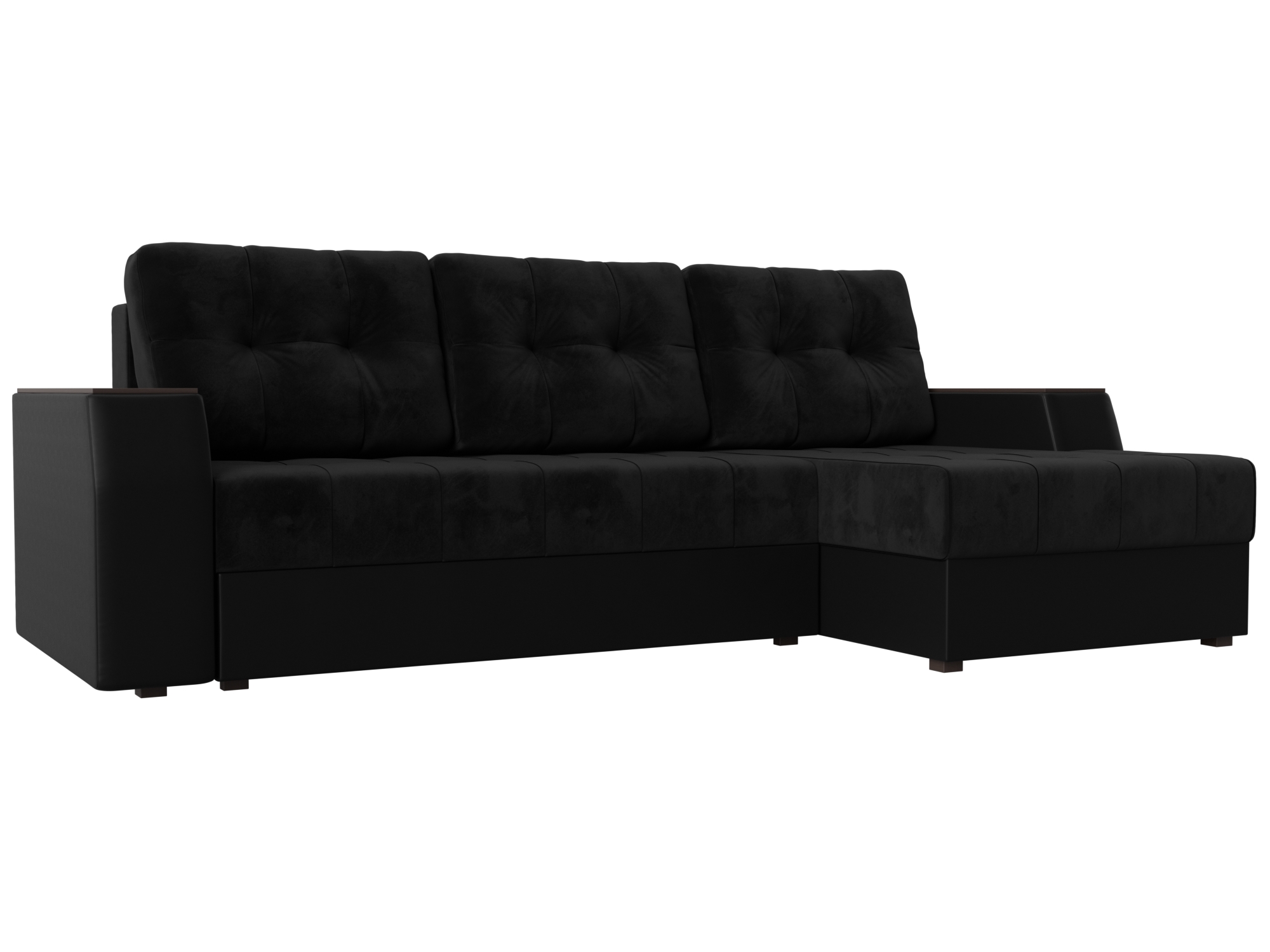 Угловой диван Эмир БС правый угол, велюр / экокожа (Черный) Код I0000367178