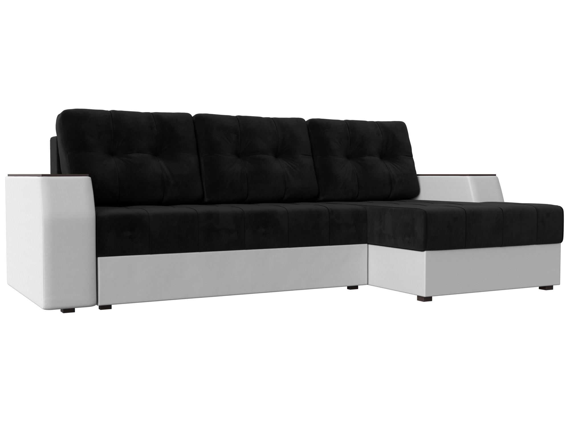 Угловой диван Эмир БС правый угол, велюр / экокожа (Черный/белый) Код I0000367179