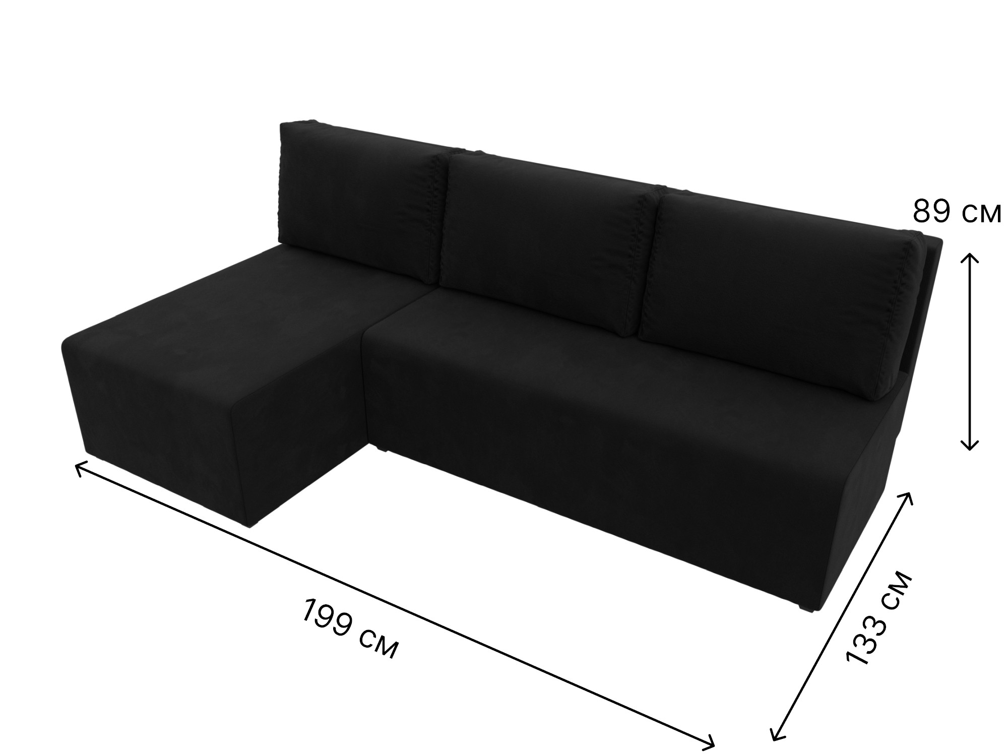 Угловой диван Поло левый угол, микровельвет (Черный) Код I0000367351