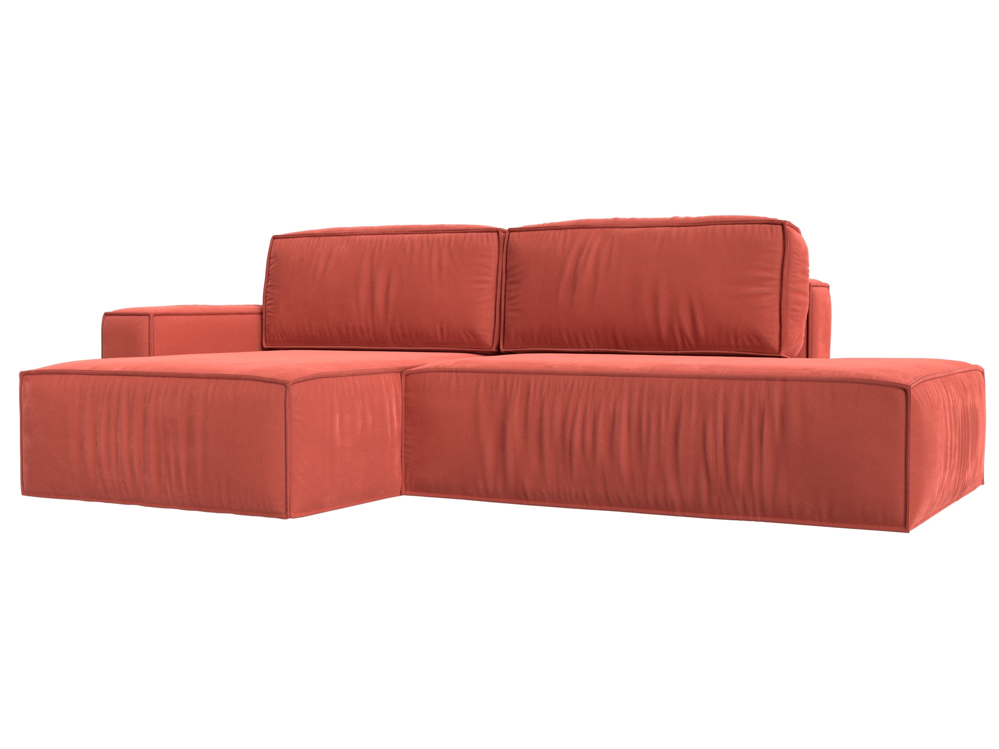 Угловой диван Прага модерн левый угол, микровельвет (Коралловый) Код I0000367678