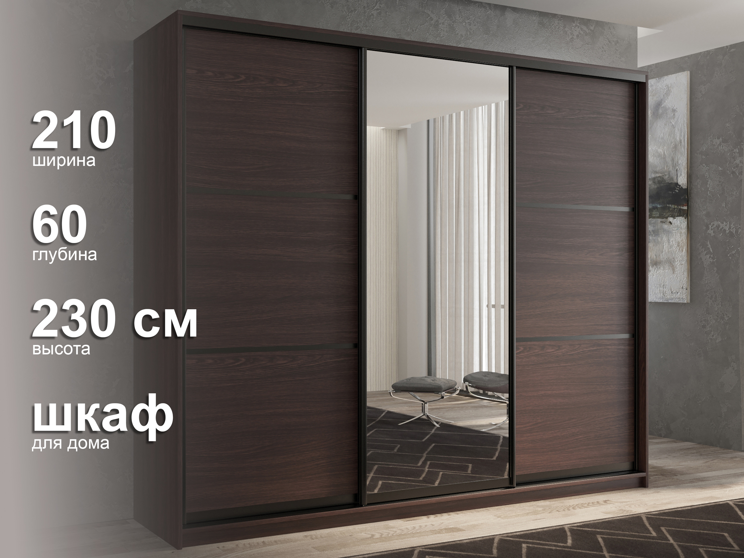 Отзывы о Столплит Шкаф-купе 3х дверный Кааппи 2 210х60 Венге