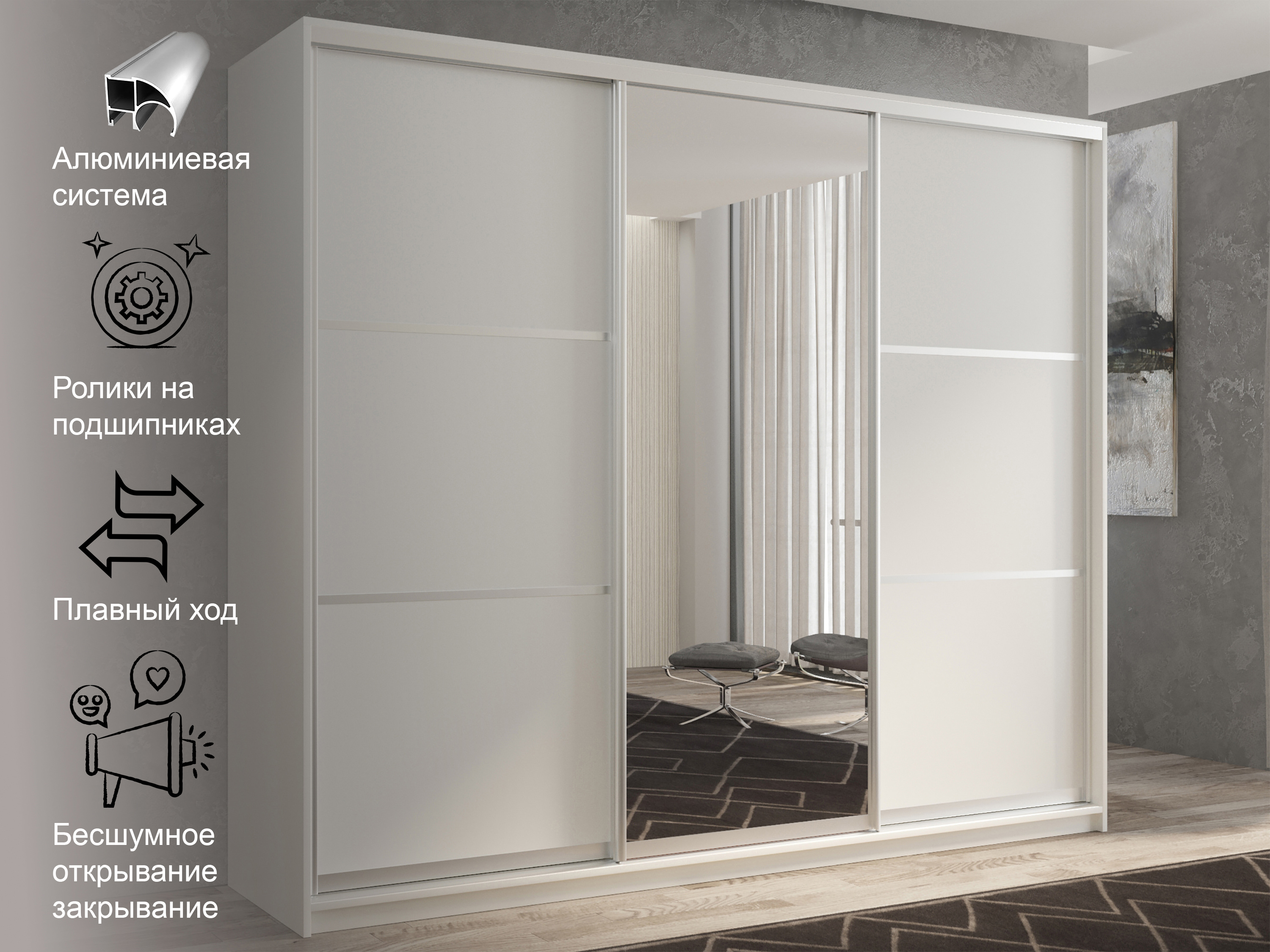 Шкаф-купе 3х дверный Кааппи 2 240х60 (Белый)