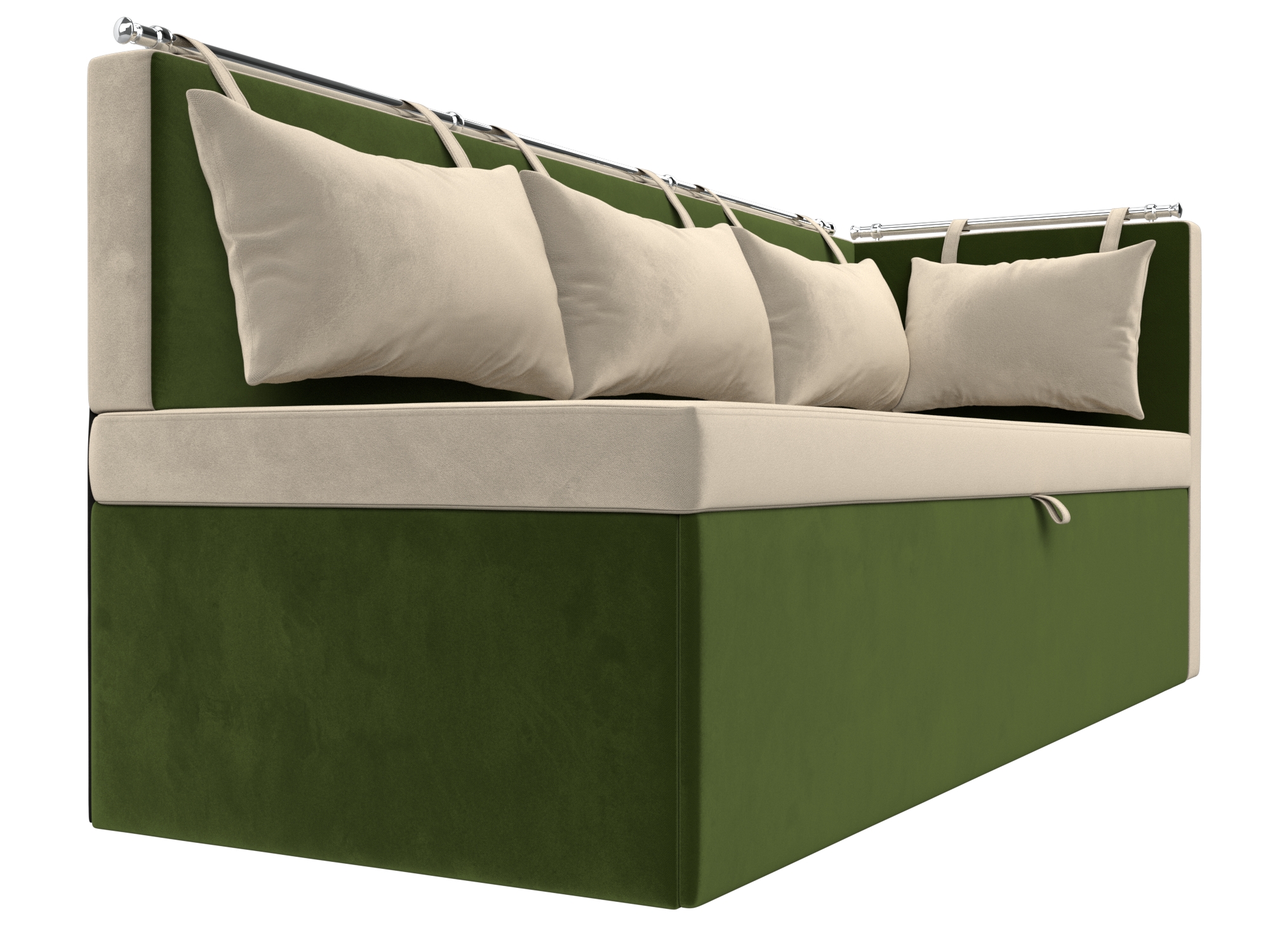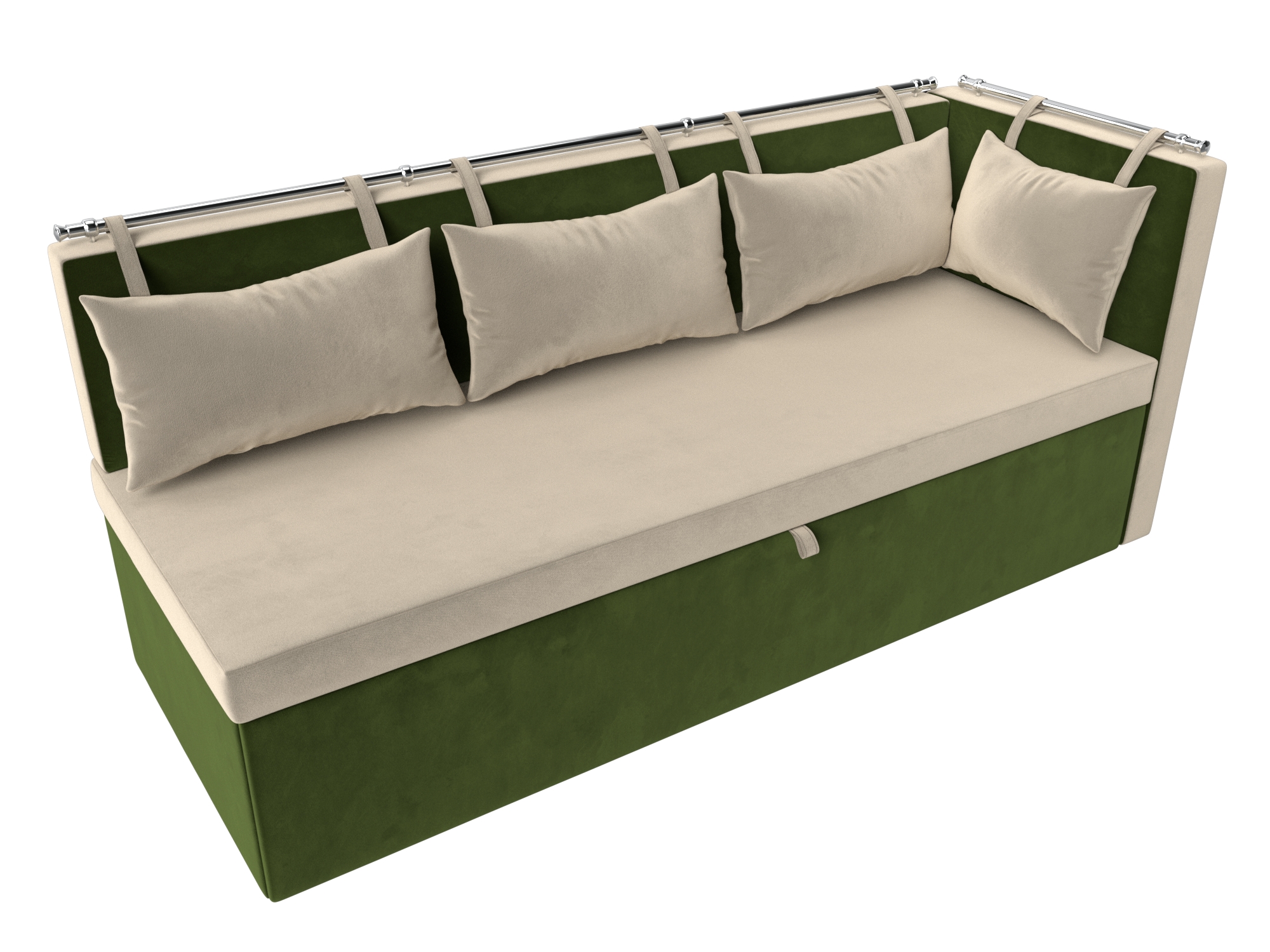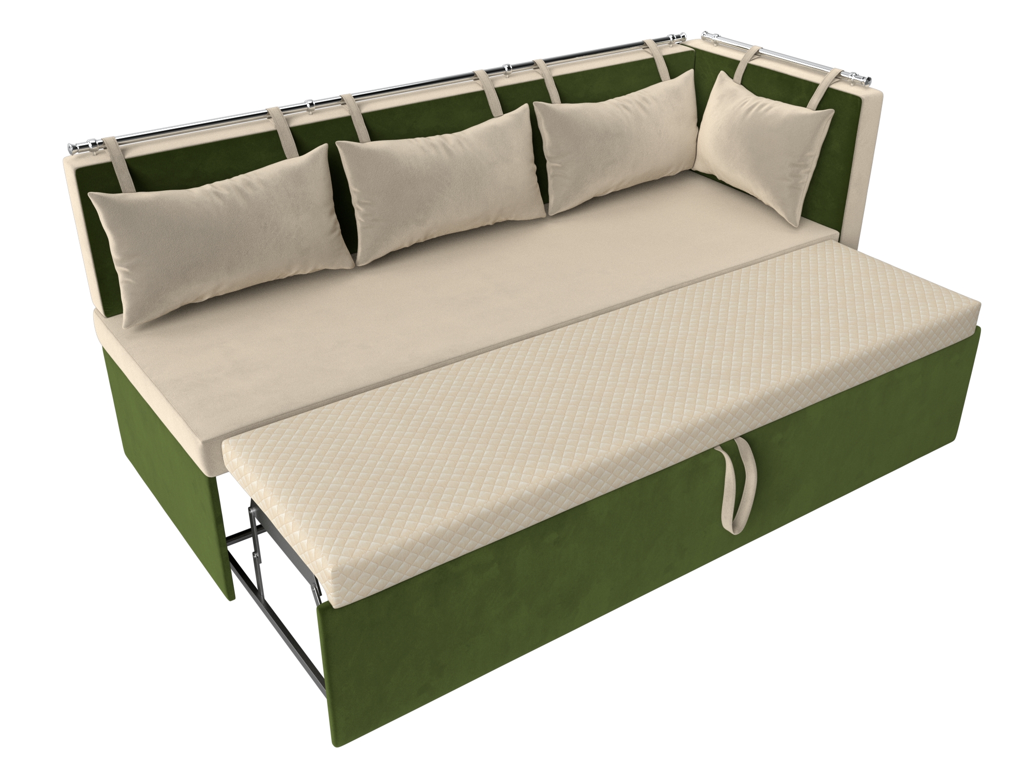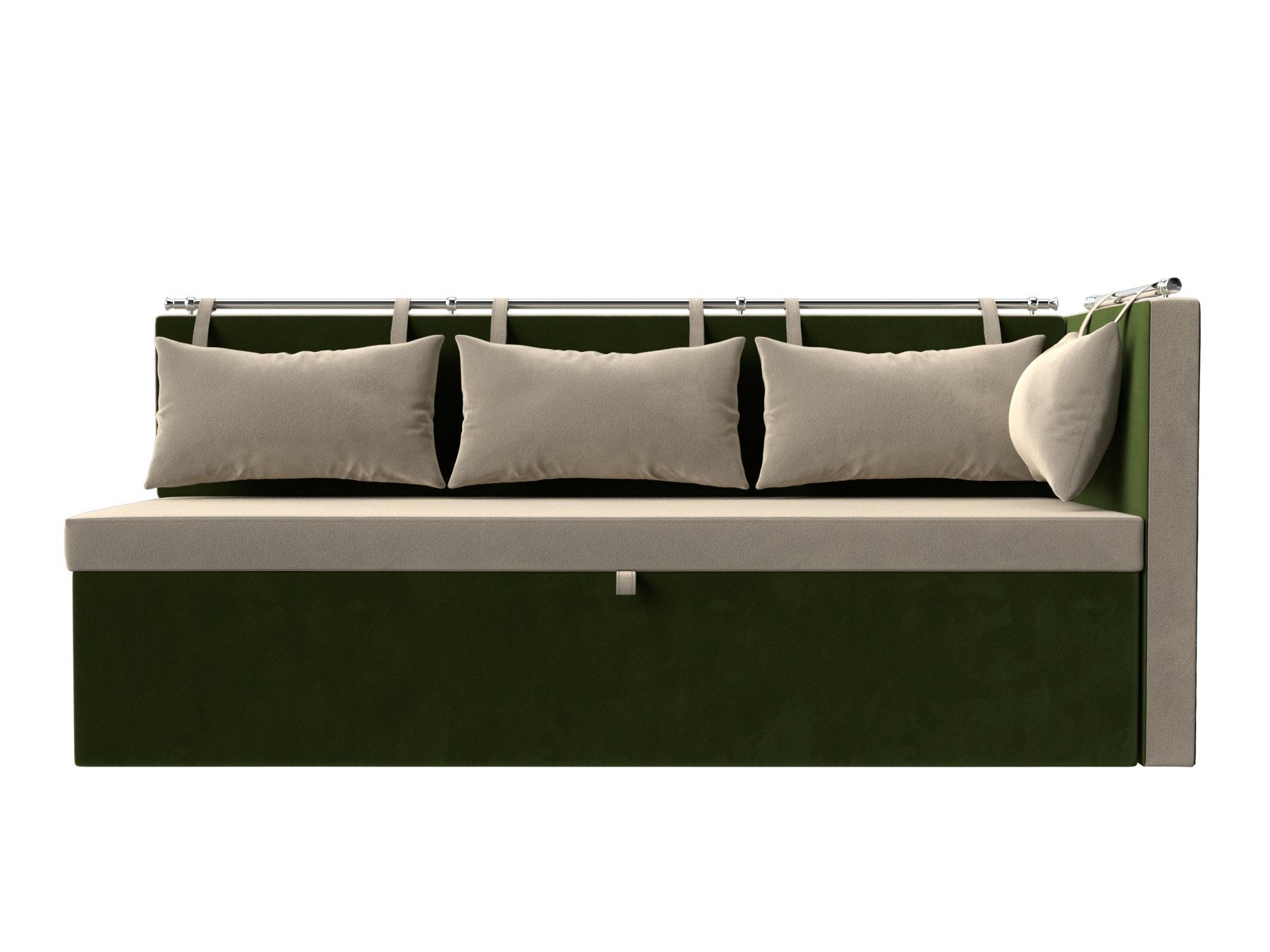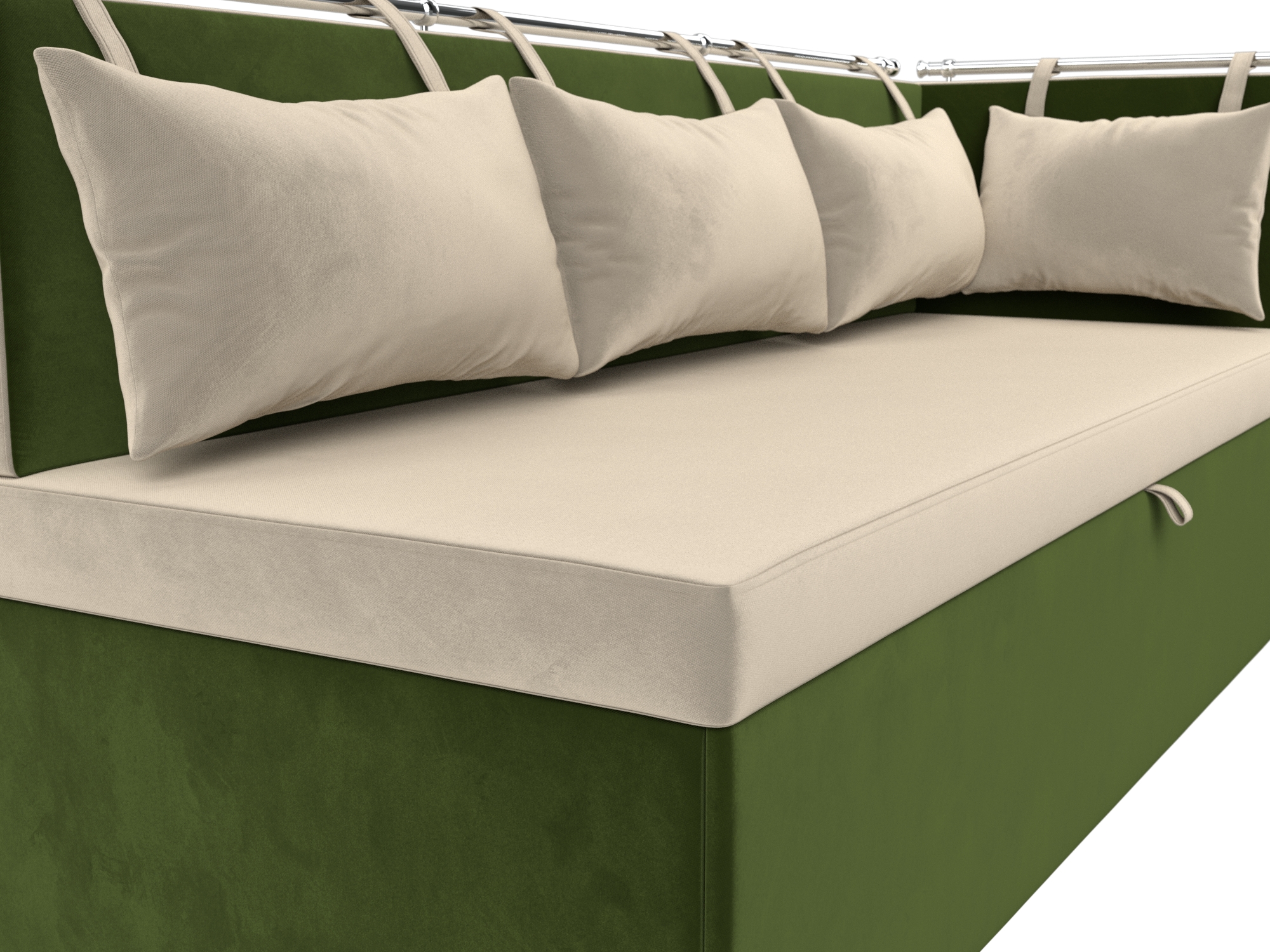Отзывы о Столплит Кухонный диван Метро с углом справа, микровельвет бежевый/зеленый