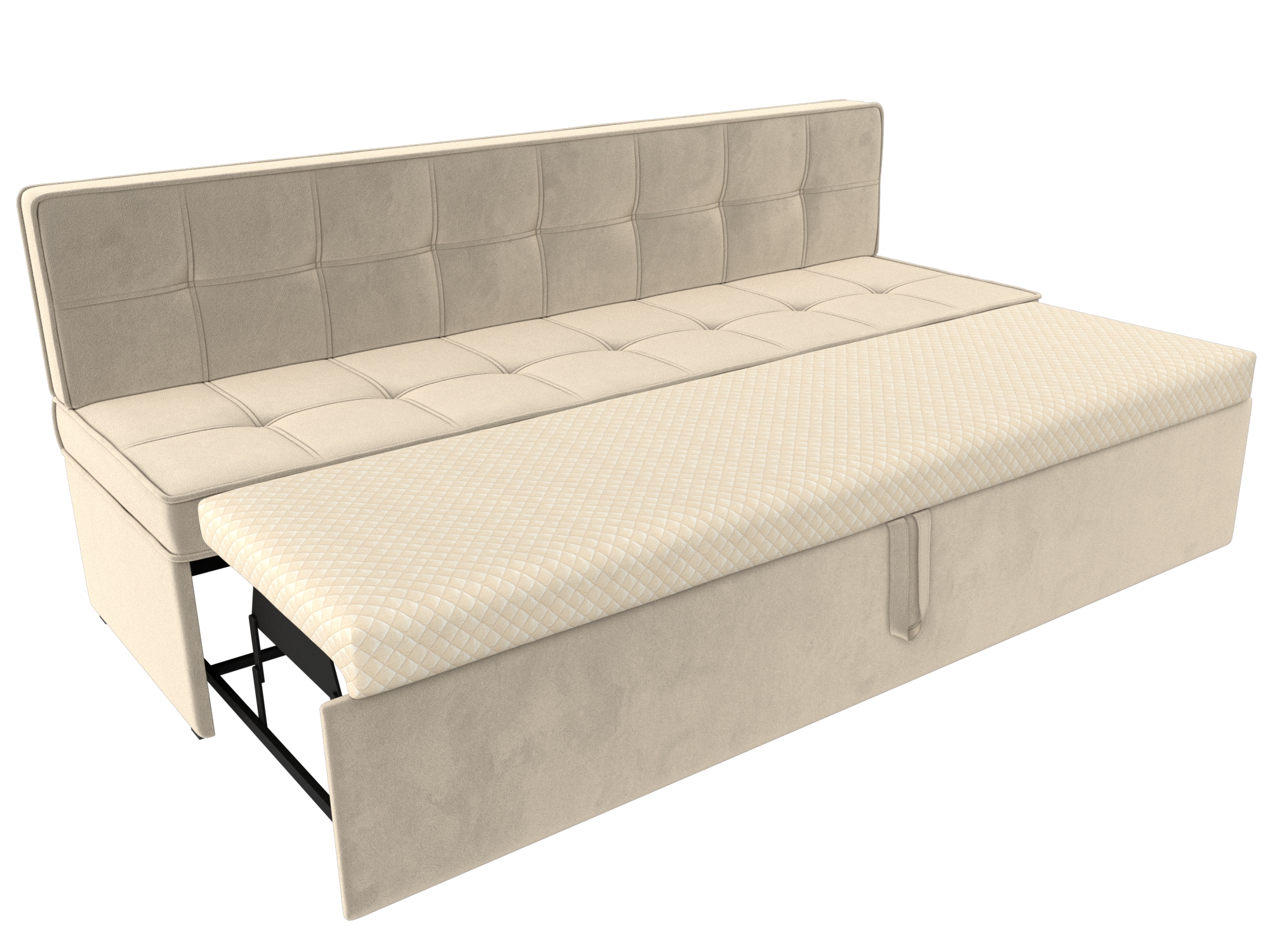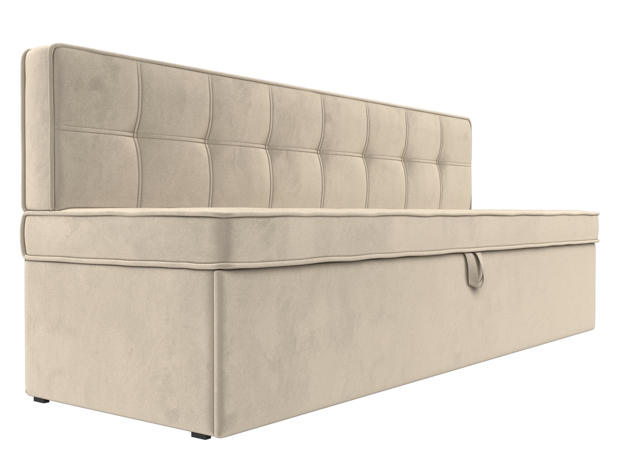 Кухонный диван «Техас» – это модель, совмещающая в себе черты минимализма и роскоши. Ее форма аскетична: отсутствие подлокотников, прямое сиденье и спинка. При этом украшение утяжками создает более изысканное настроение. Такой диван будет уместно смотреться как в классическом интерьере, так и в современном.