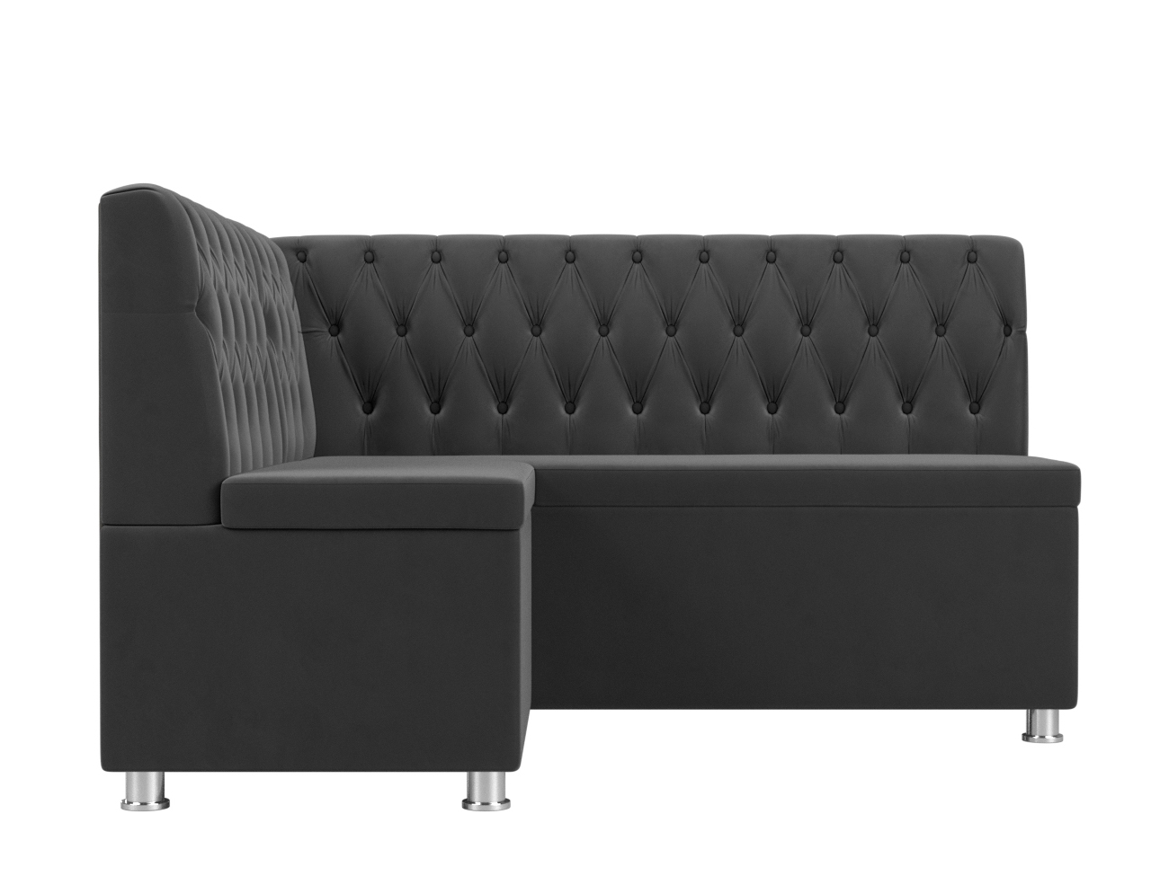 Кухонный угловой диван «Мирта» отлично впишется в обстановку современной классической кухни. Его традиционный дизайн органично сочетается с функциональностью: спинку дивана украшает каретная стяжка, а сиденье обладает достаточной жесткостью и упругостью для комфортного отдыха. Модель не раскладывается, но имеет под сиденьем огромные ящики, в которых можно держать самые разнообразные вещи – от продуктов длительного хранения до комплектов зимней одежды и детских игрушек.