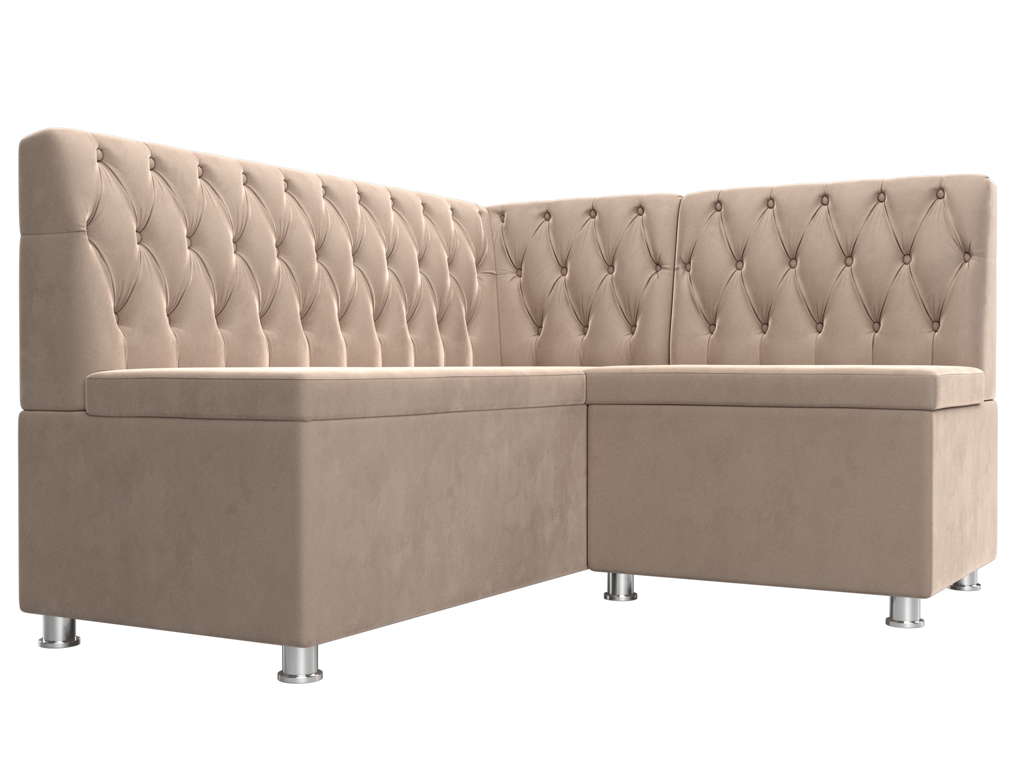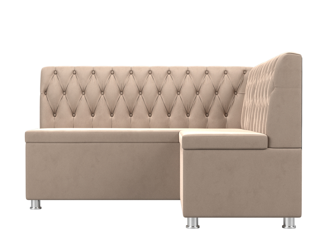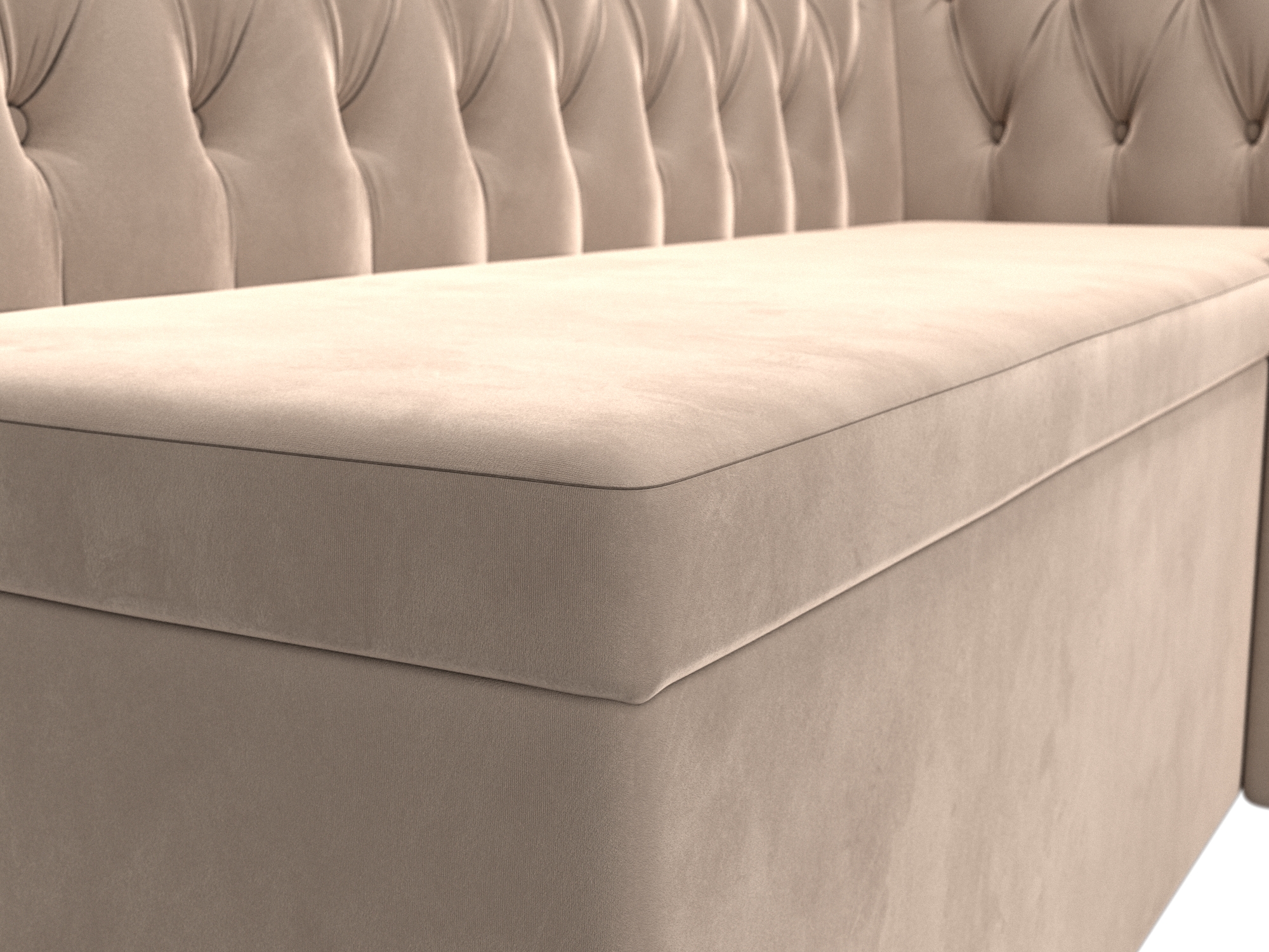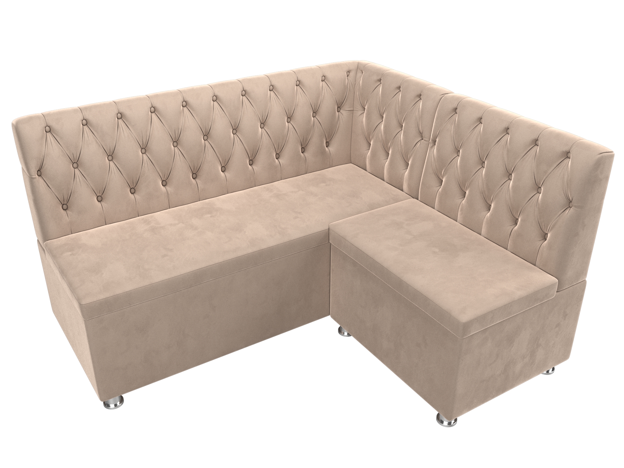 Кухонный угловой диван «Мирта» отлично впишется в обстановку современной классической кухни. Его традиционный дизайн органично сочетается с функциональностью: спинку дивана украшает каретная стяжка, а сиденье обладает достаточной жесткостью и упругостью для комфортного отдыха. Модель не раскладывается, но имеет под сиденьем огромные ящики, в которых можно держать самые разнообразные вещи – от продуктов длительного хранения до комплектов зимней одежды и детских игрушек.
