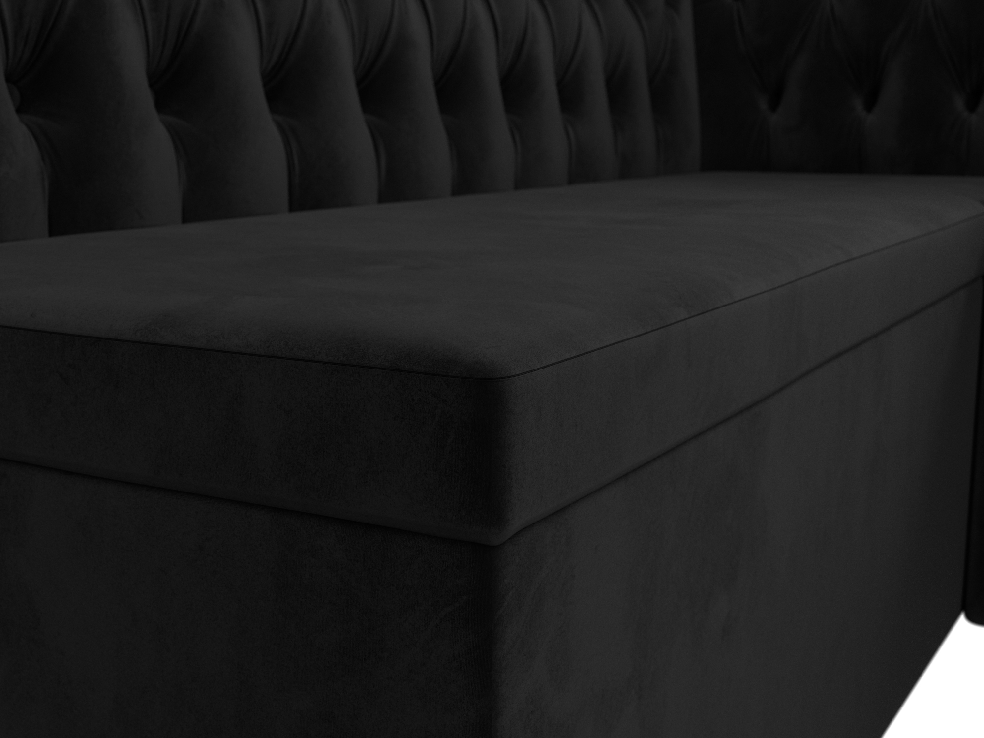 Кухонный угловой диван «Мирта» отлично впишется в обстановку современной классической кухни. Его традиционный дизайн органично сочетается с функциональностью: спинку дивана украшает каретная стяжка, а сиденье обладает достаточной жесткостью и упругостью для комфортного отдыха. Модель не раскладывается, но имеет под сиденьем огромные ящики, в которых можно держать самые разнообразные вещи – от продуктов длительного хранения до комплектов зимней одежды и детских игрушек.