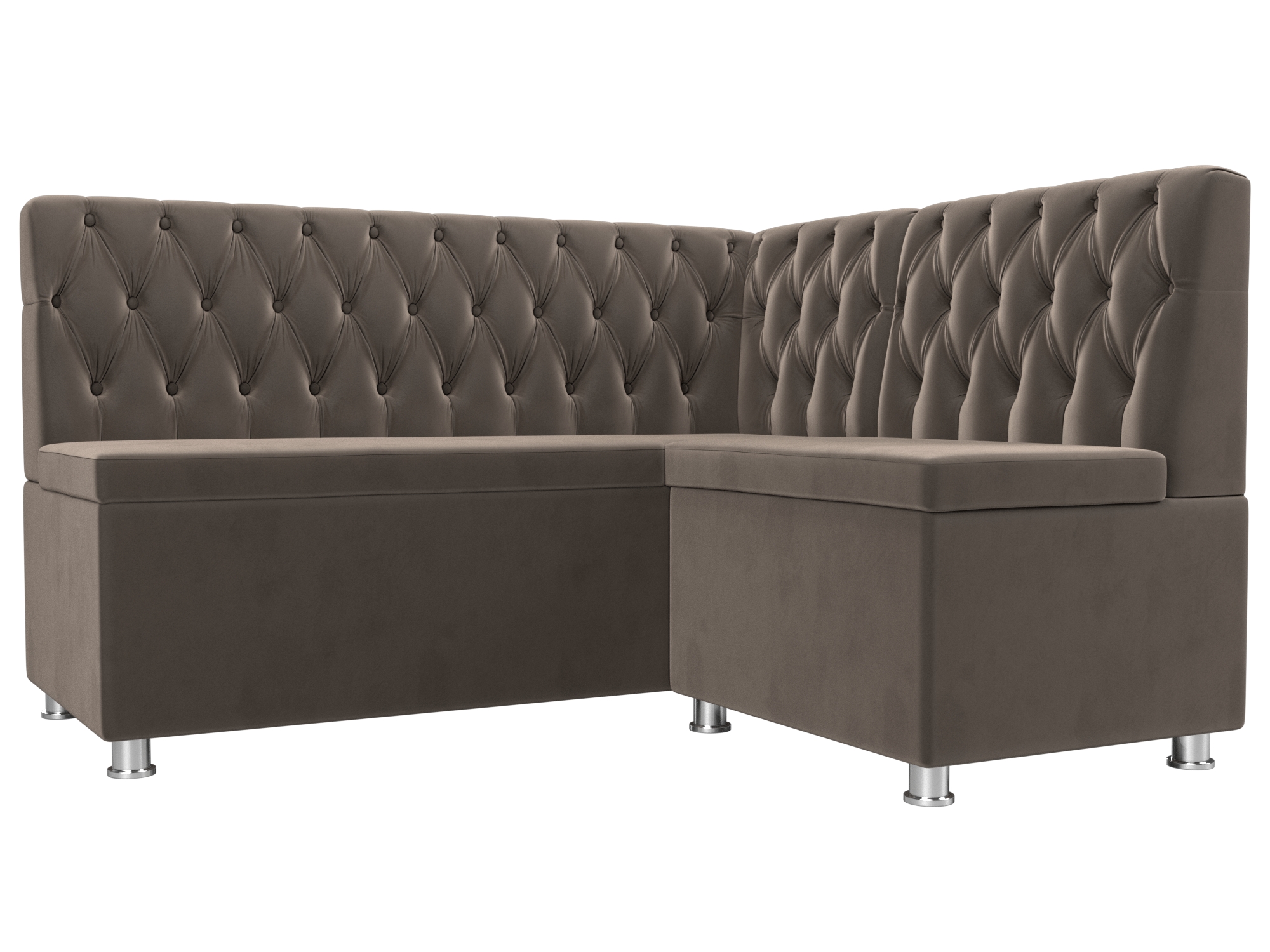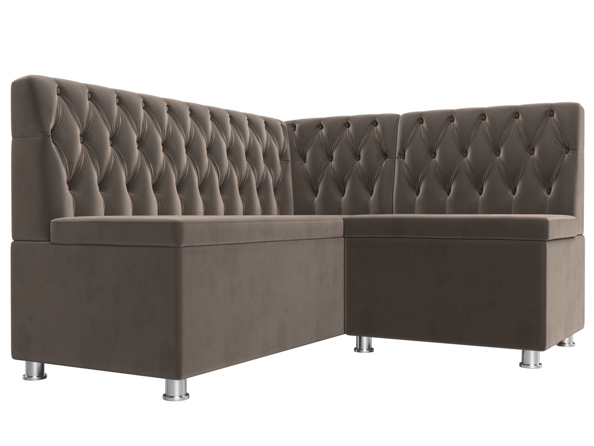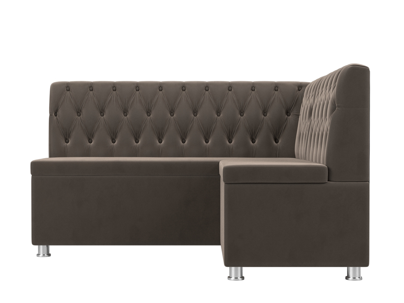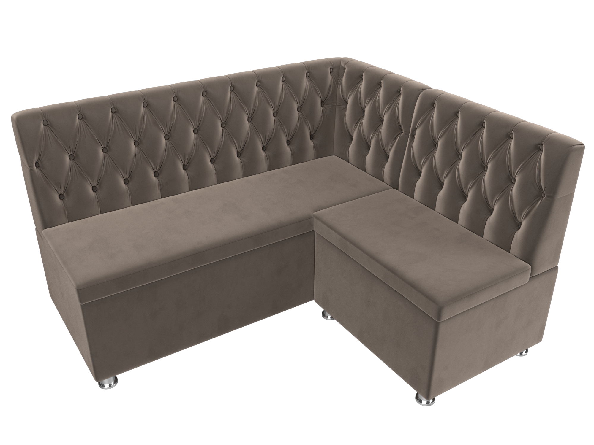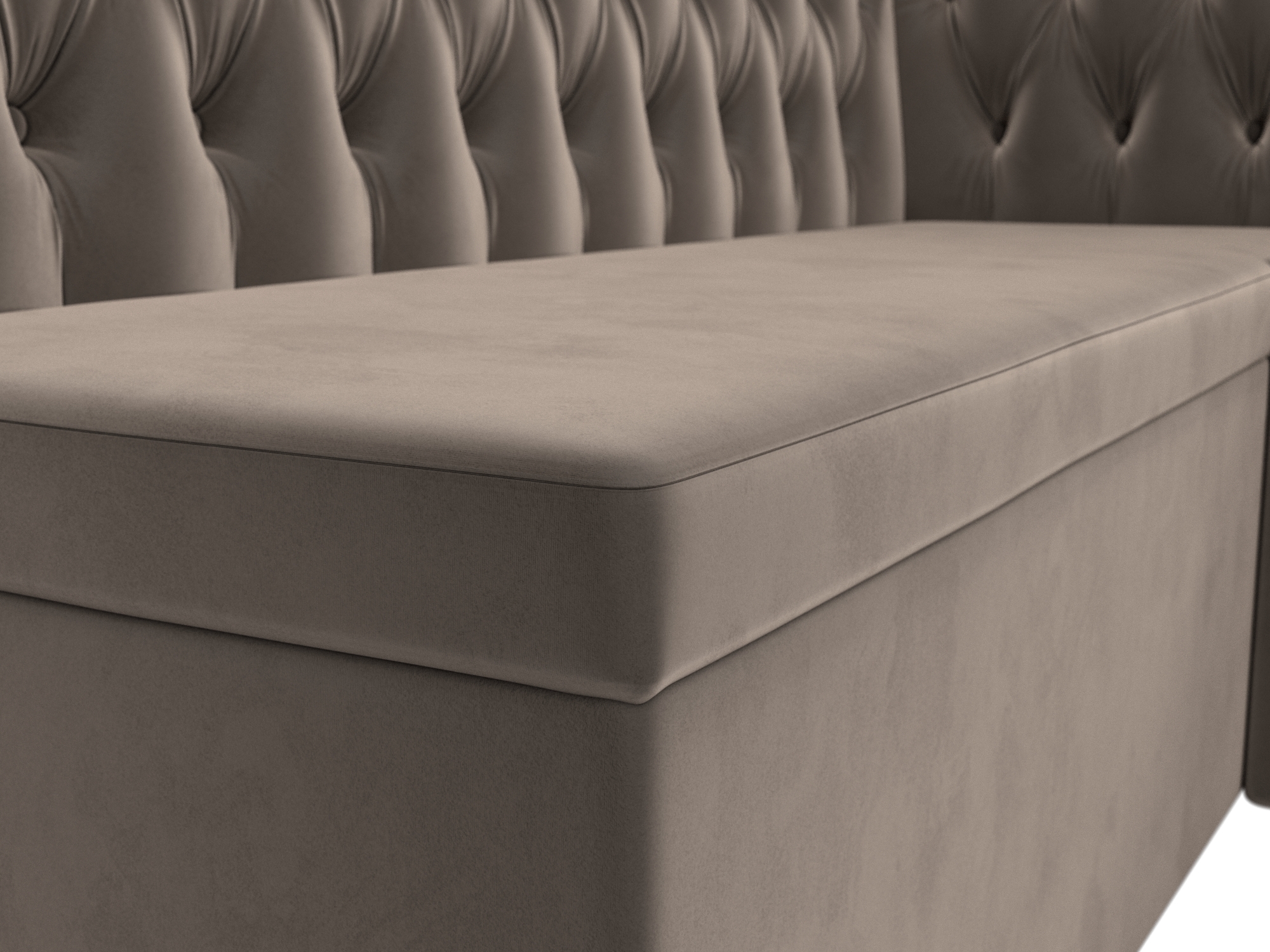 Кухонный угловой диван «Мирта» отлично впишется в обстановку современной классической кухни. Его традиционный дизайн органично сочетается с функциональностью: спинку дивана украшает каретная стяжка, а сиденье обладает достаточной жесткостью и упругостью для комфортного отдыха. Модель не раскладывается, но имеет под сиденьем огромные ящики, в которых можно держать самые разнообразные вещи – от продуктов длительного хранения до комплектов зимней одежды и детских игрушек.