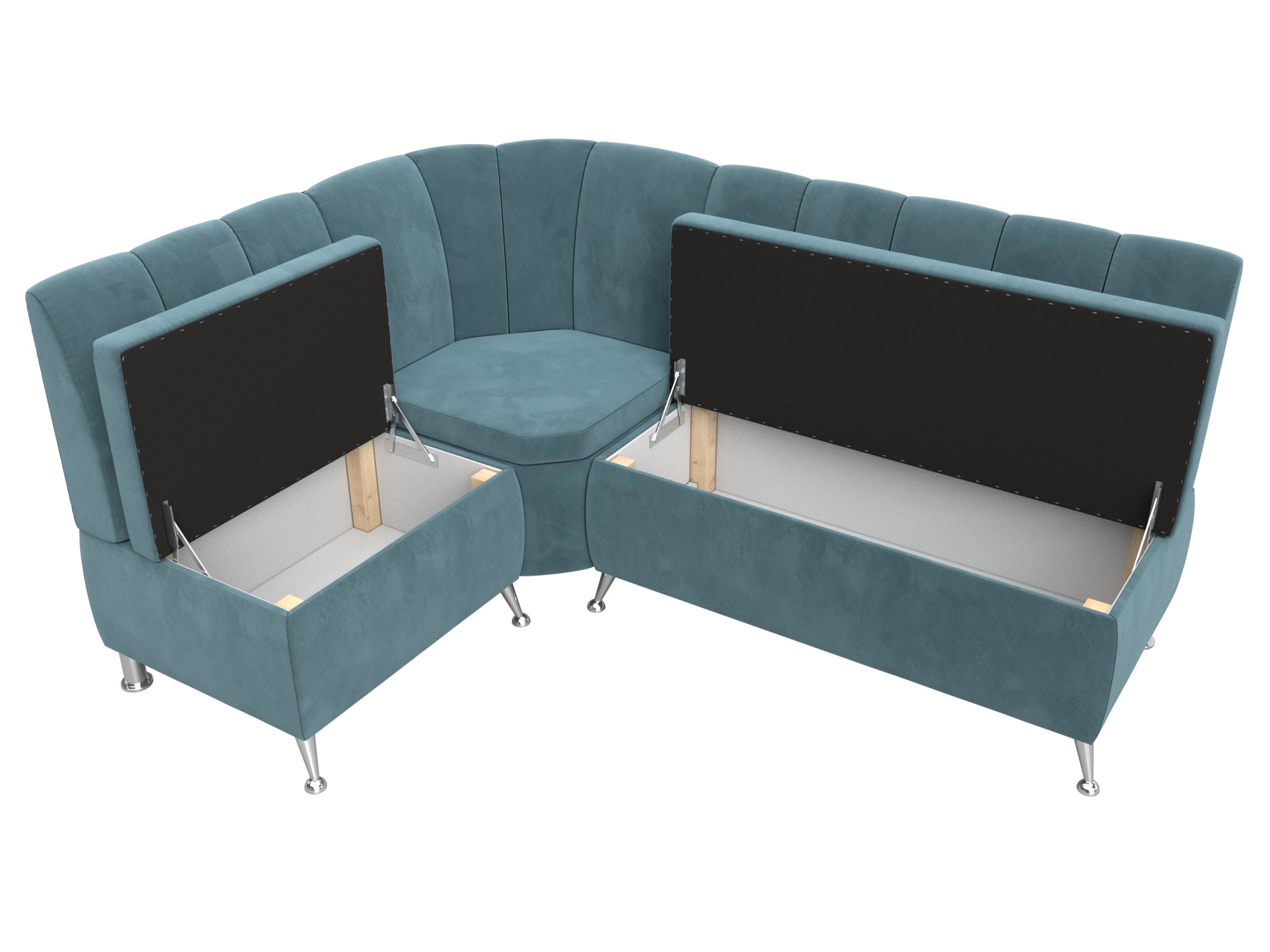 Диван кухонный прямой Кантри левый угол, велюр (Голубой) Код I0000369595