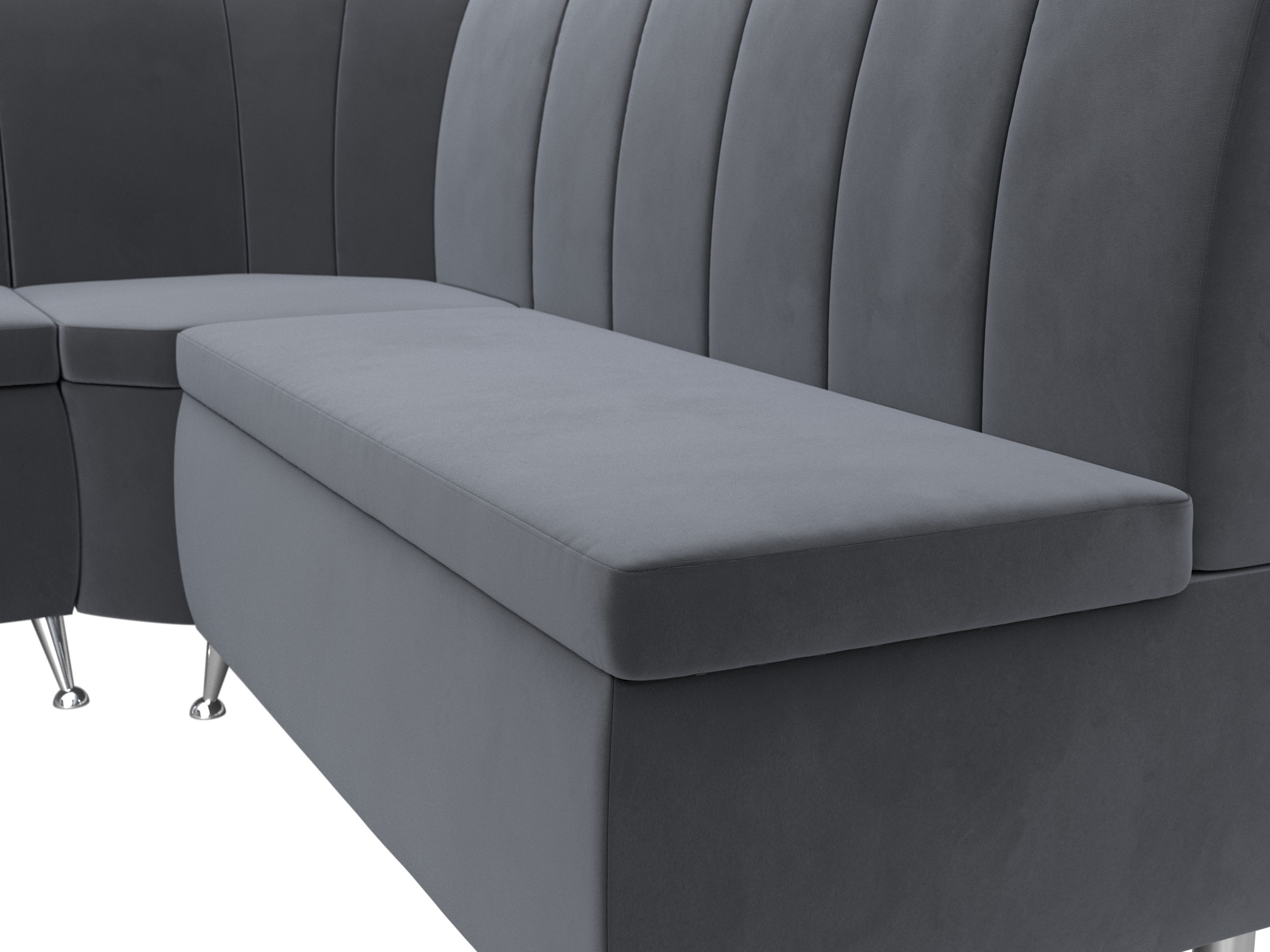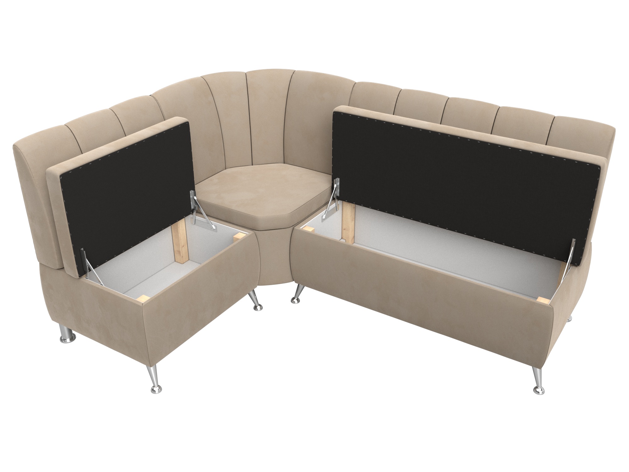 Компактный угловой диван Кантри – именно то, что нужно для полноценного обустройства кухни. Он удобный и функциональный. Под продольными сиденьями находятся вместительные ящики. Угол сплошной, не открывается. Модель практичная: водоотталкивающая ткань идеально подойдет для семей с маленькими детьми.