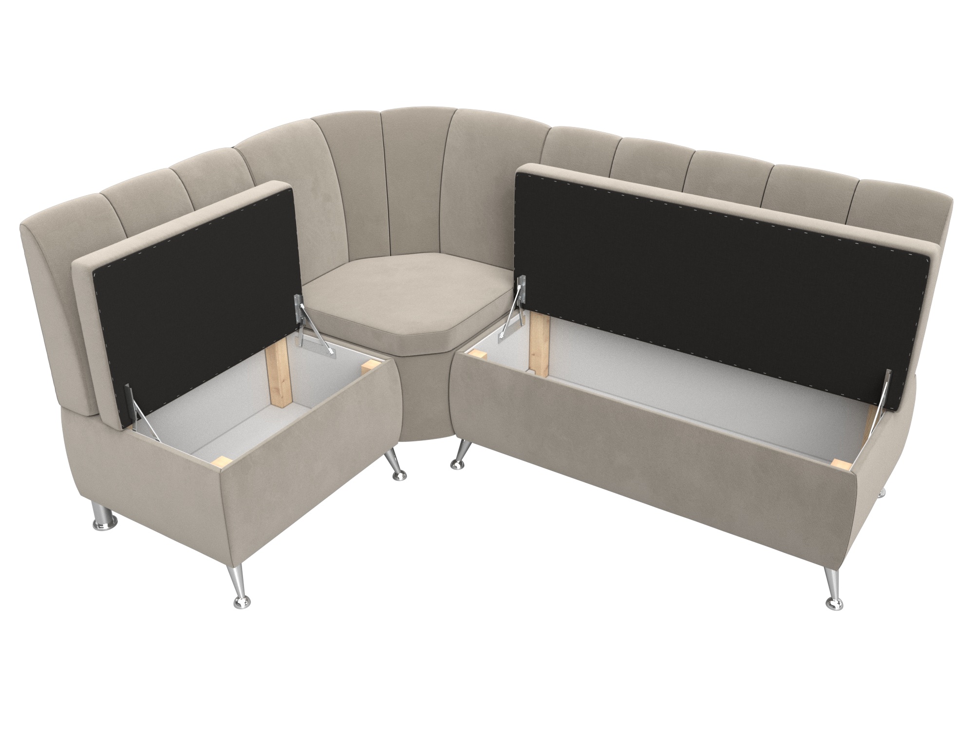 Компактный угловой диван Кантри – именно то, что нужно для полноценного обустройства кухни. Он удобный и функциональный. Под продольными сиденьями находятся вместительные ящики. Угол сплошной, не открывается. Модель практичная: водоотталкивающая ткань идеально подойдет для семей с маленькими детьми.