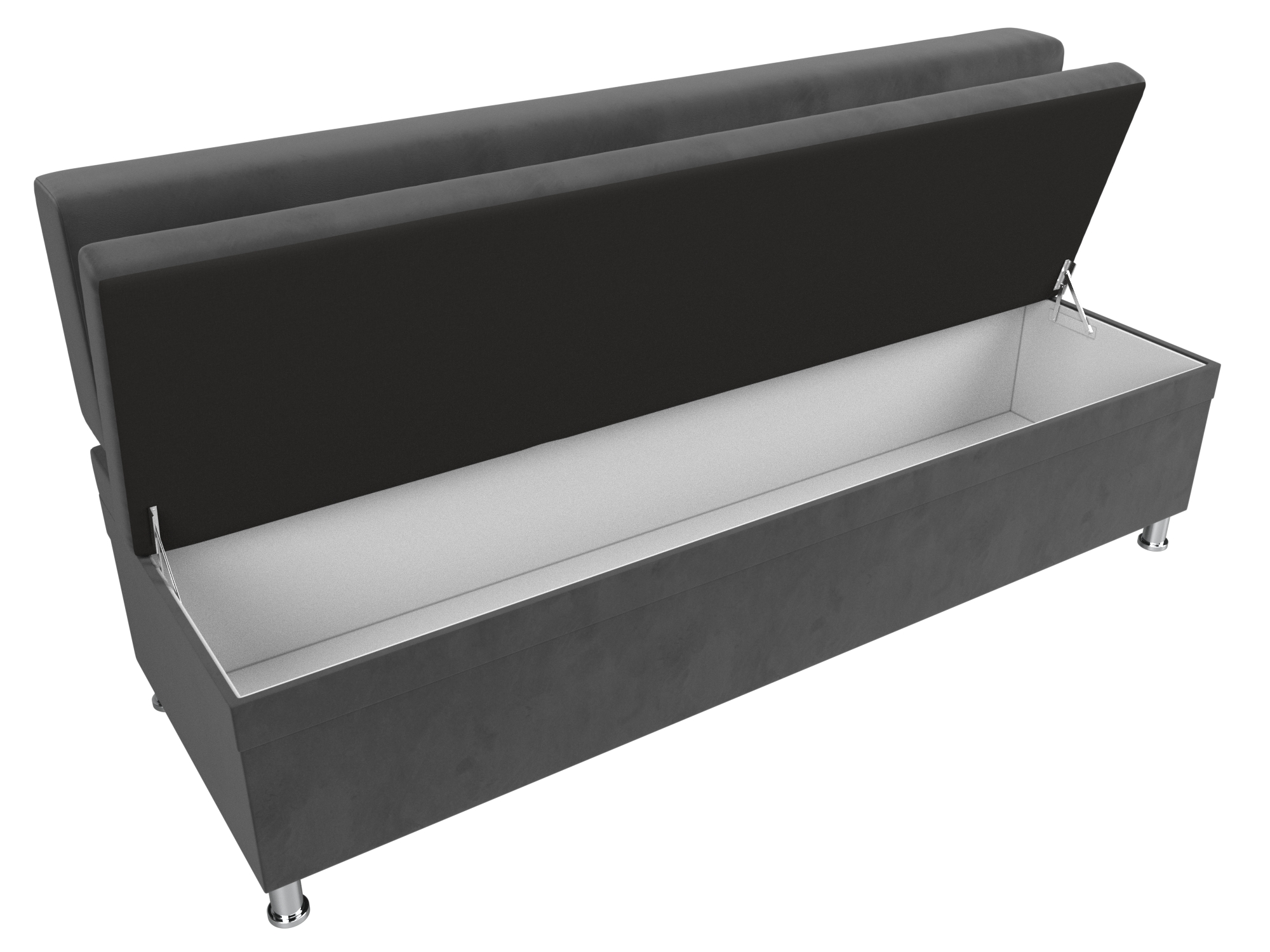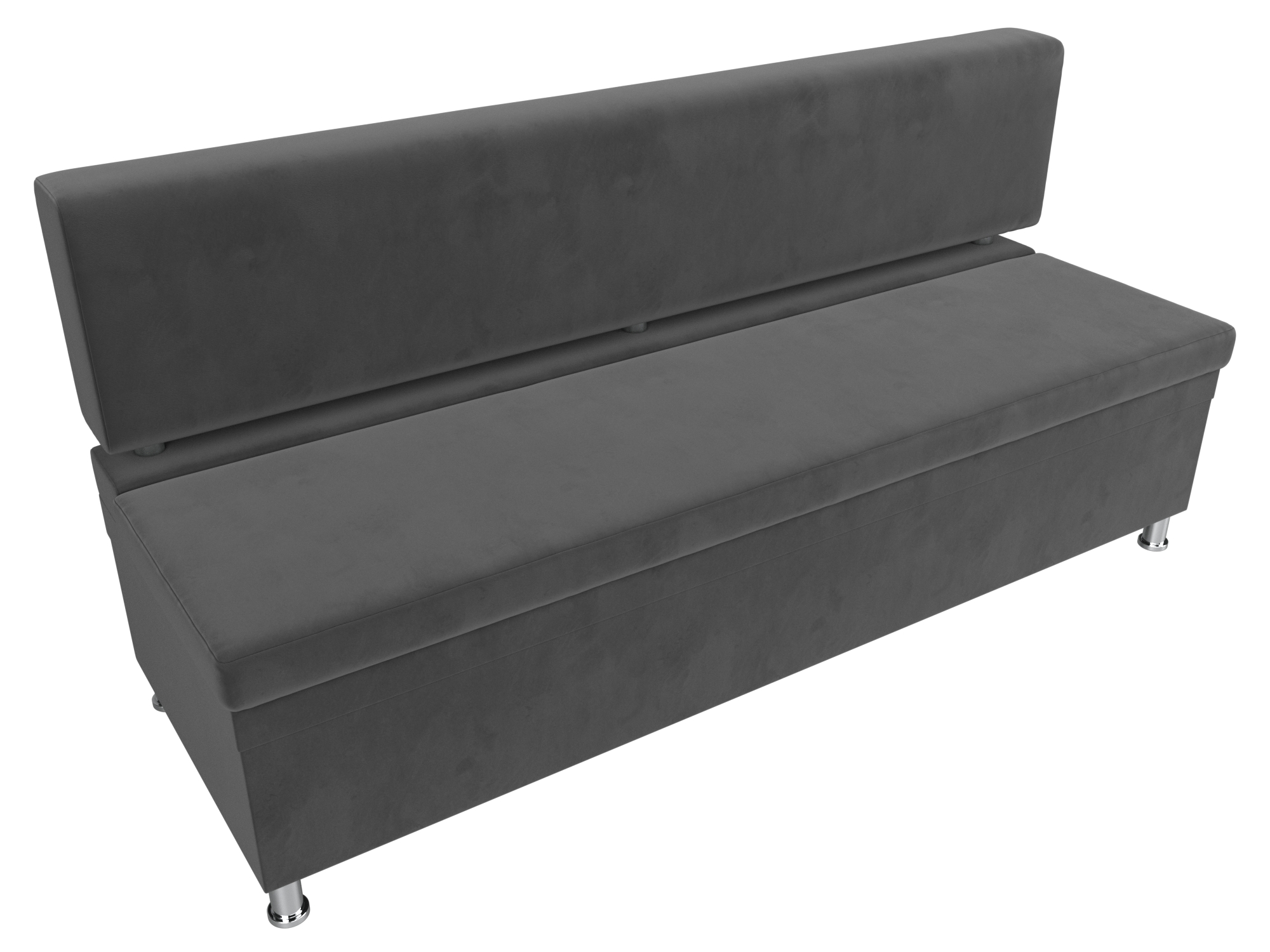 Стайл – прямой кухонный диван с ящиком для хранения продуктов и домашней утвари. Он надежно стоит на высоких ножках. Спинка модели крепится к основанию при помощи металлических труб. Под сиденьем расположена ниша для хранения вещей. Конструкции придают устойчивость и надежность металлические крепкие ножки.