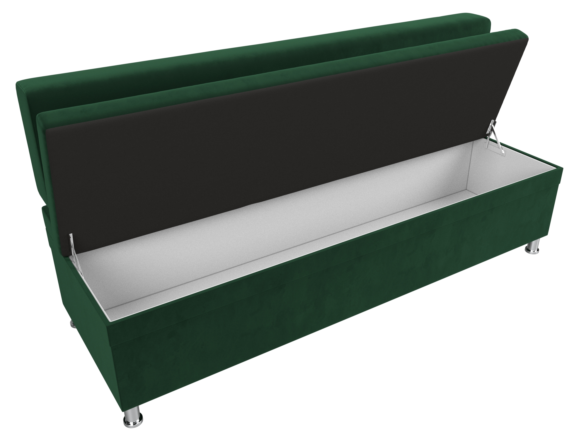 Стайл – прямой кухонный диван с ящиком для хранения продуктов и домашней утвари. Он надежно стоит на высоких ножках. Спинка модели крепится к основанию при помощи металлических труб. Под сиденьем расположена ниша для хранения вещей. Конструкции придают устойчивость и надежность металлические крепкие ножки.