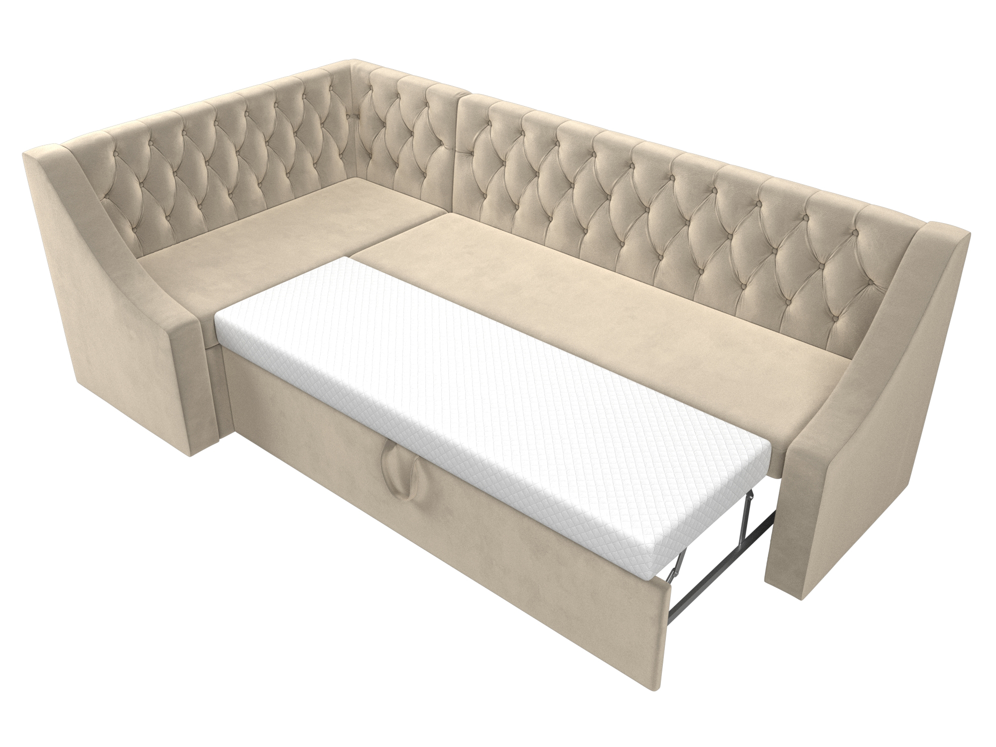 При компактных габаритах: 202x132x88 см подойдет для кухонных комнат любых размеров, легко раскладывается, обеспечивая спальное место 95x170 см.