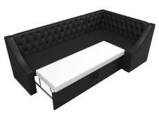 Мерлин – угловой кухонный диван хорошего качества по доступной цене. Он отлично подойдет для дополнения кухни в малогабаритной квартире. Высокая спинка, украшенная каретной стяжкой, снимет напряжение с позвоночника. Подлокотники помогут расслабить руки. Сиденье легко превращается в полноценную кровать. Дополнительную выгоду обеспечивает вместительный ящик размером 117х35х57 см под угловым сиденьем.
