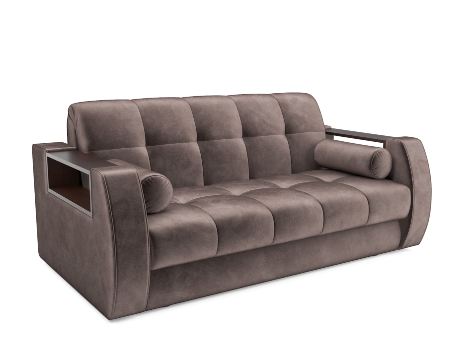 Особенностью модели являются функциональные подлокотники-полки, выполненные из ЛДСП цвета темного Венге, размером 57 × 14 см. Диван "Боро №3" со встроенными полками позволяет хранить все необходимое в одном месте, например, пульт от телевизора, наушники, зарядное устройство.