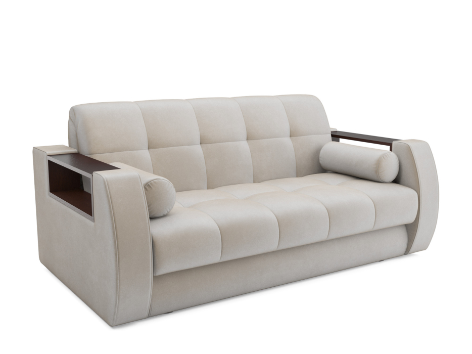 Особенностью модели являются функциональные подлокотники-полки, выполненные из ЛДСП цвета темного Венге, размером 57 × 14 см. Диван "Боро №3" со встроенными полками позволяет хранить все необходимое в одном месте, например, пульт от телевизора, наушники, зарядное устройство.