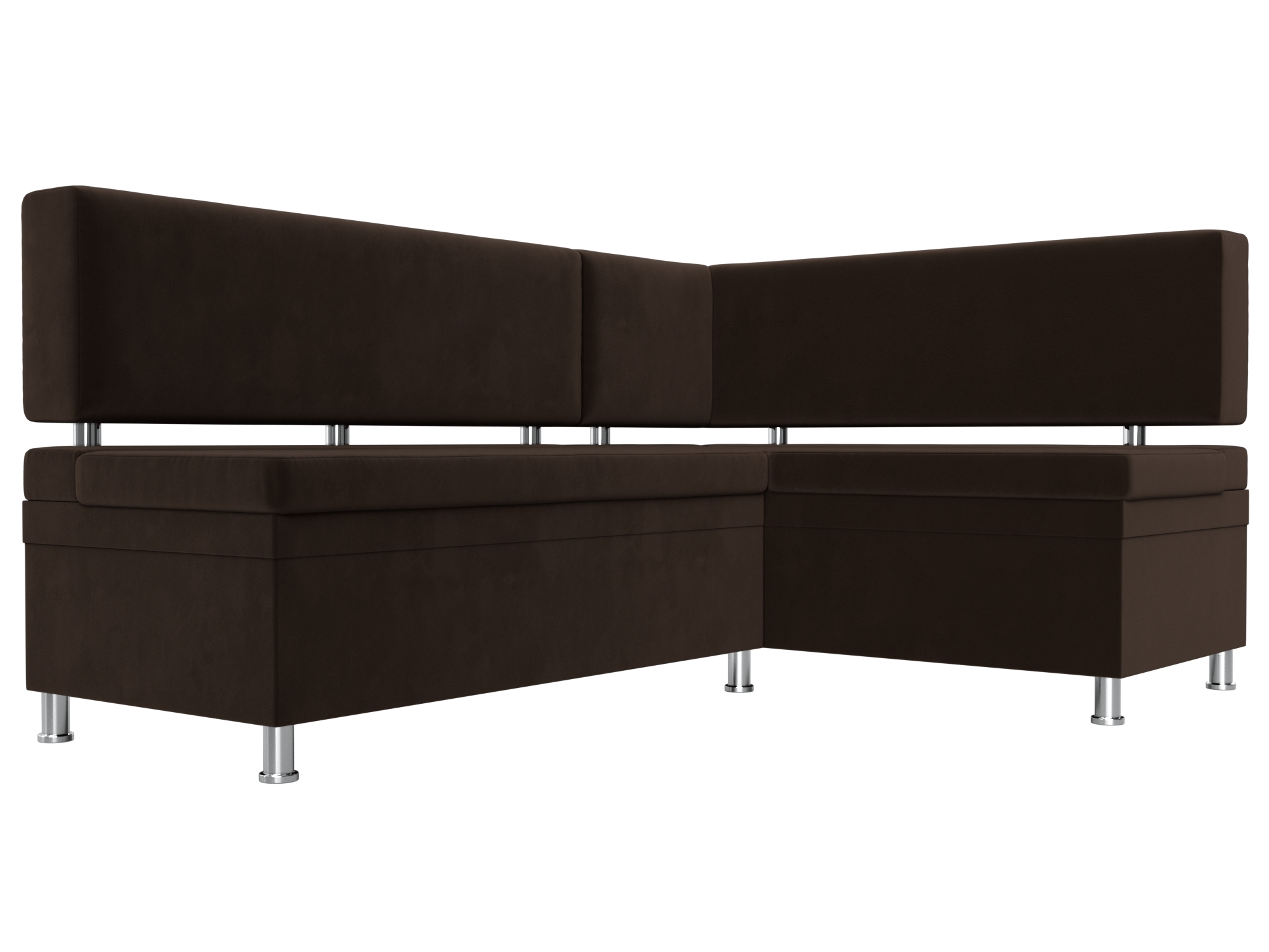 Стайл – универсальный угловой диван для кафе или кухни. Спинка и сиденья модели прямые. Элегантность дизайна подчеркивается высокими металлическими ножками и декоративными трубами, расположенными под спинкой.