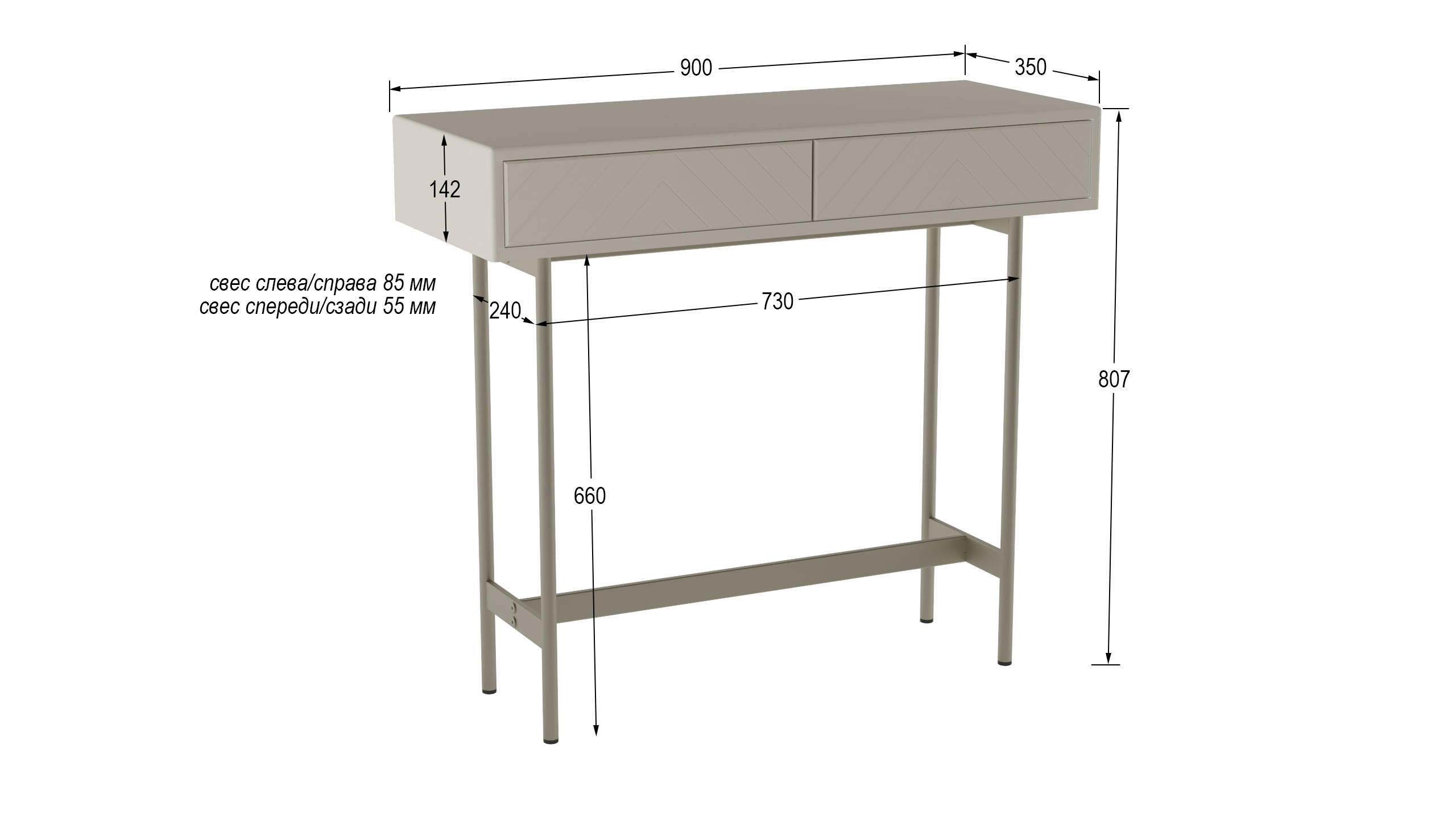 Консоль выполнена из материала МДФ 16 мм в сочетании с металлическим профилем 20 мм.