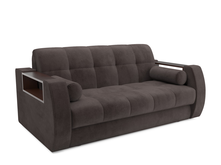 Особенностью модели являются функциональные подлокотники-полки, выполненные из ЛДСП цвета темного Венге, размером 57 × 14 см. Диван "Боро №3" со встроенными полками позволяет хранить все необходимое в одном месте, например, пульт от телевизора, наушники, зарядное устройство.