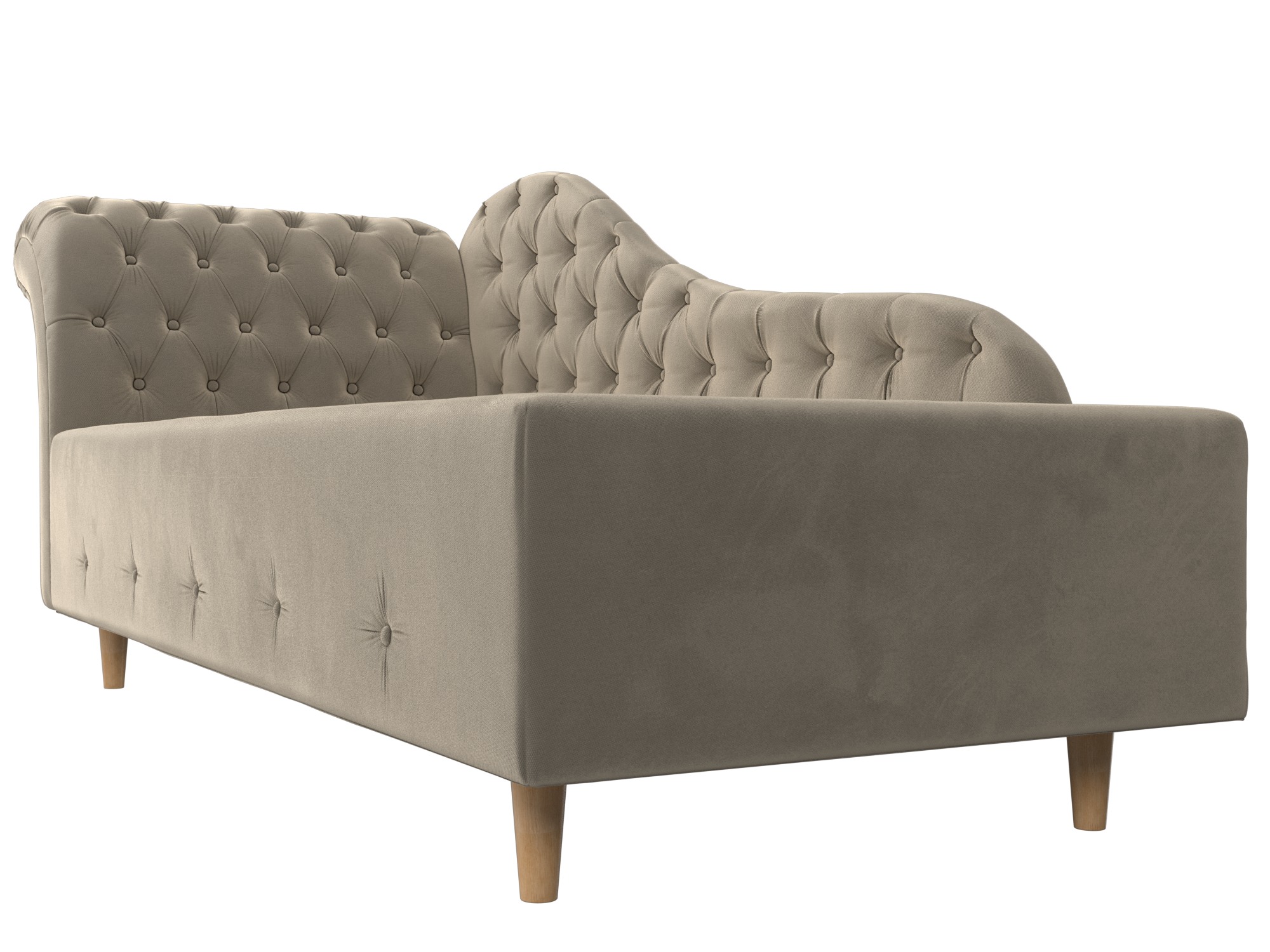 Односпальная кушетка Камерон – мебельное изделие, представляющее собой одноместную кровать с головной спинкой на высоких деревянных ножках. С ее помощью возможно добавить в интерьер функциональности и аристократичности.