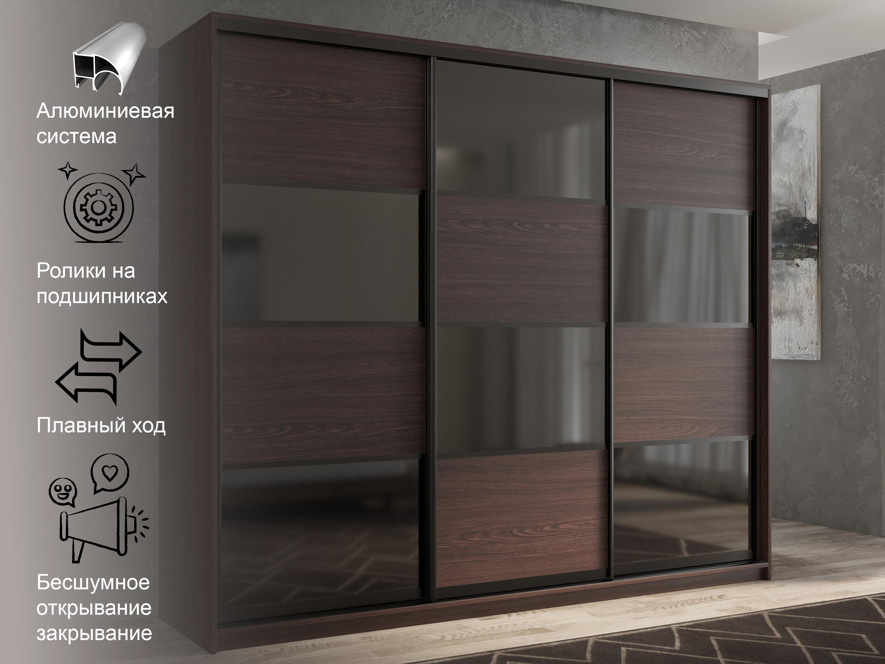 Отзывы о Столплит Шкаф-купе 3х дверный Кааппи 13 180х60 Венге