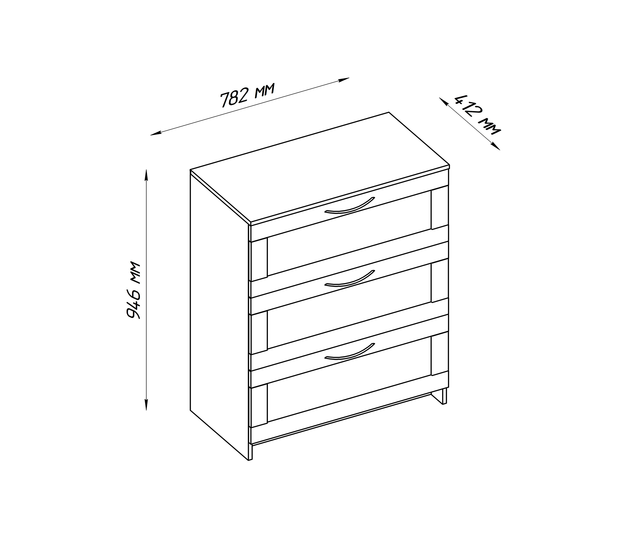 Комод СИРИУС с тремя наружными выдвижными ящиками, 782х412х946