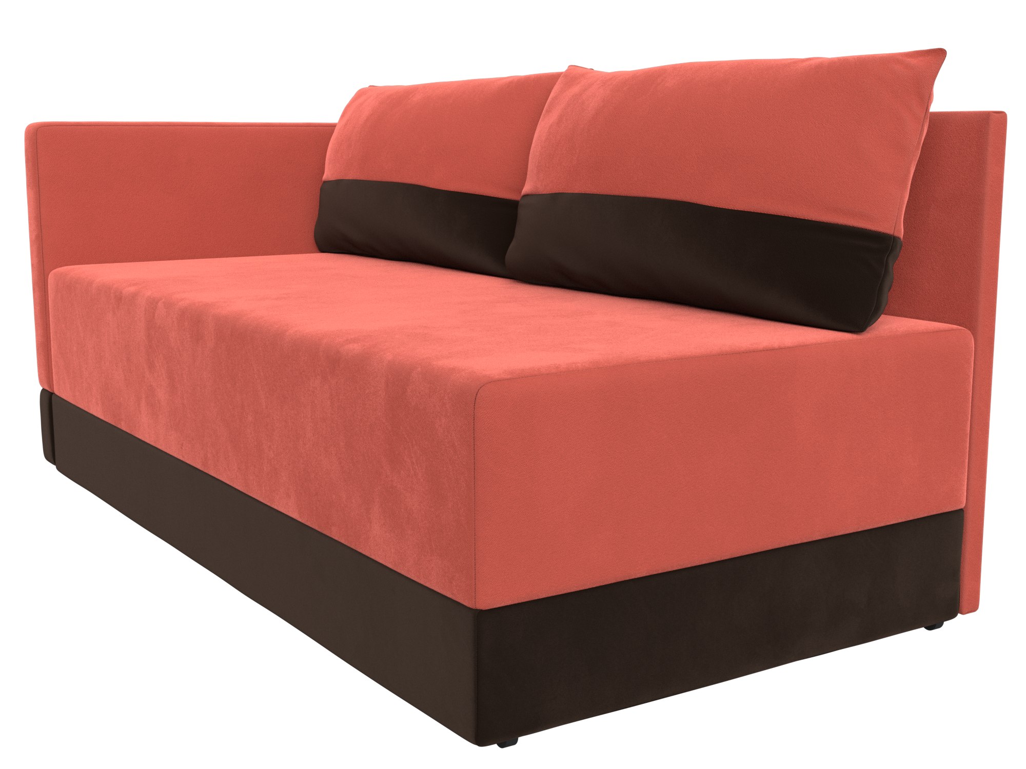 Отзывы о Столплит Кушетка Никас левая, микровельвет Коралловый/Коричневый