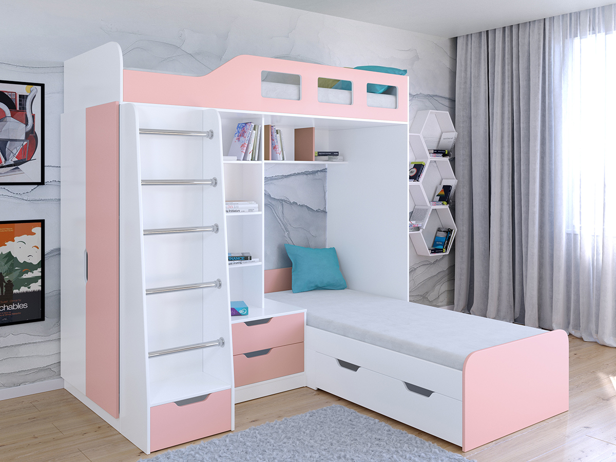 Кровать двухъярусная Астра 4 Белый (Розовый)