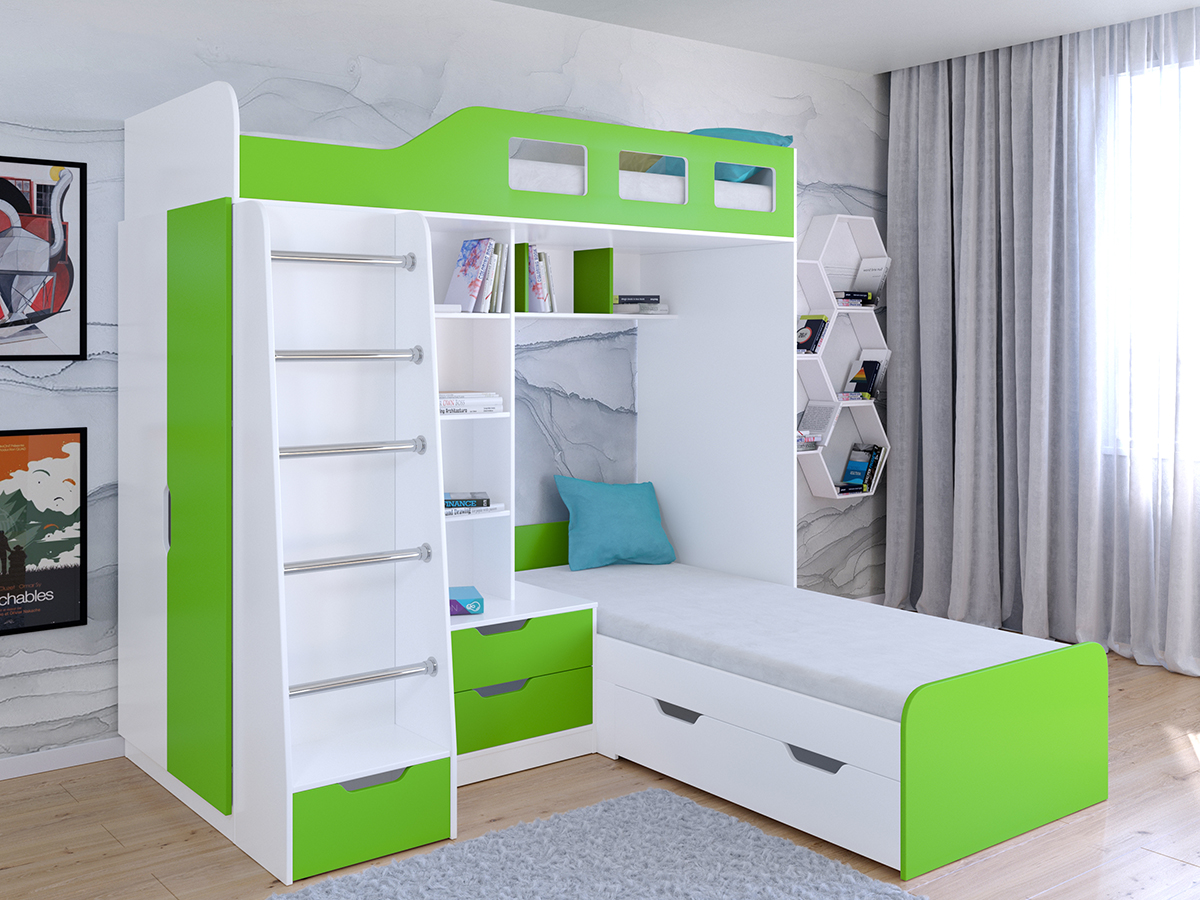 Кровать двухъярусная Астра 4 Белый (Салатовый)