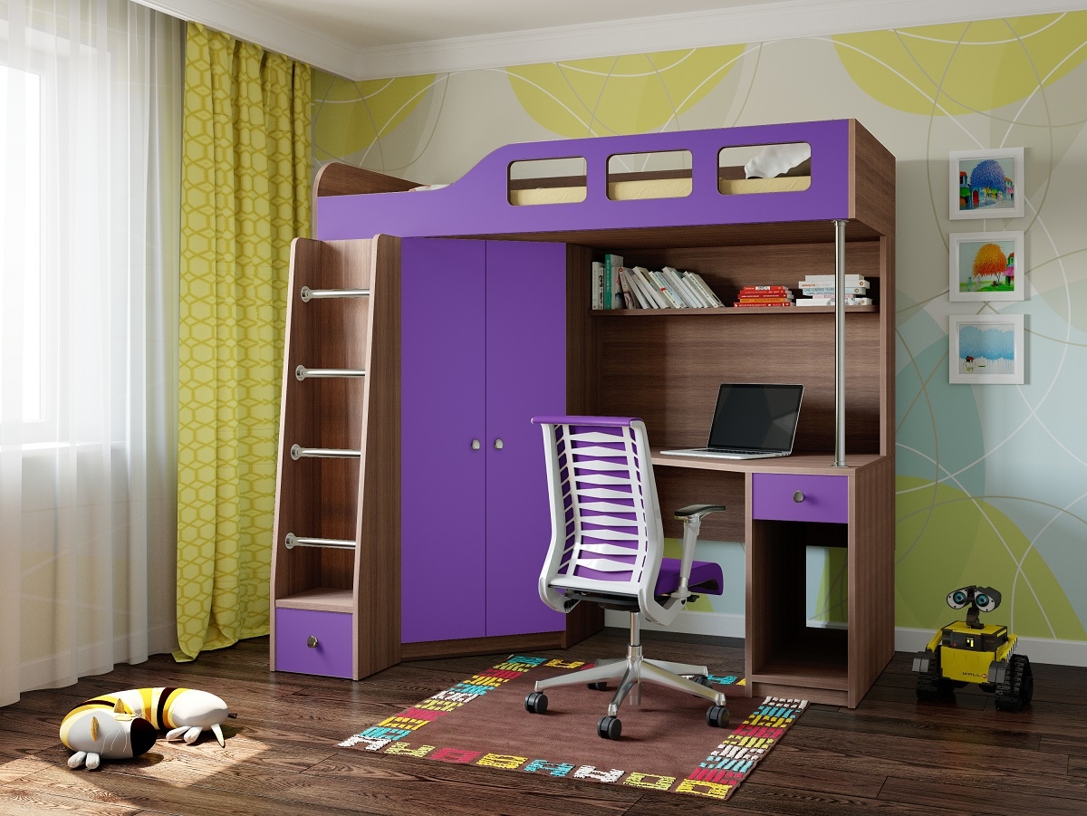 Отзывы о Столплит Кровать-чердак Астра 7 Дуб молочный Дуб шамони/Фиолетовый