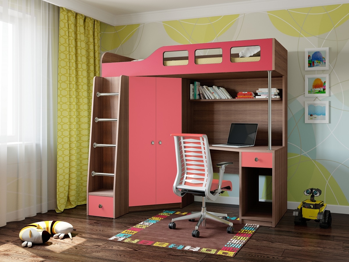 Отзывы о Столплит Кровать-чердак Астра 7 Дуб молочный Дуб шамони/Розовый