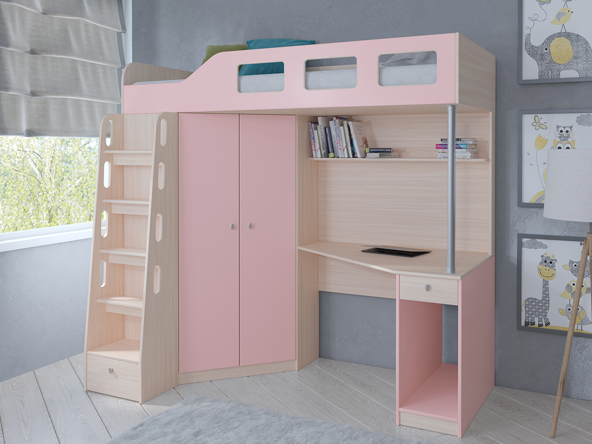Отзывы о Столплит Кровать-чердак Астра 7 Дуб молочный Розовый