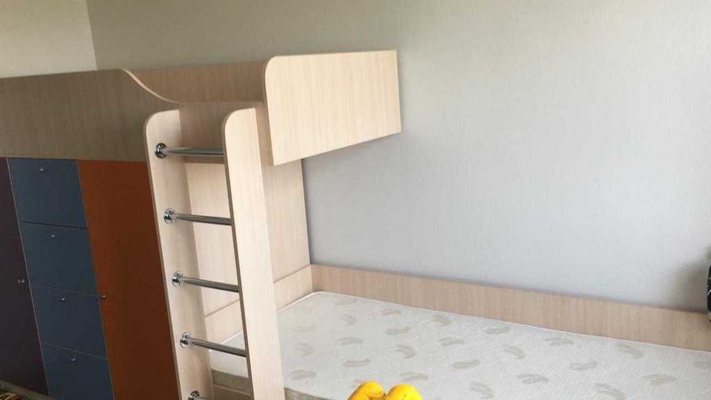 Очень практичная мебель!!! Яркая расцветка - салатовая, намного сочнее, чем на фото, что помогает расставить акценты на интерьере комнаты. Удобное расположение кроватей, большие вместительные ящики и полки! Все в восторге!!!