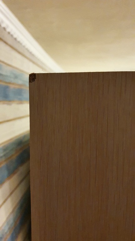 НО! При глубине шкафа 80 см (под всей кроватью) штанга для вешалок всего 30 см, что соответствует ширине шкафа. Это очень нерациональное использование внутреннего пространства. Поэтому пришлось дополнительно покупать выдвижную штангу 60 см. и крепить её к "потолку"... Планка нижней кровати, что крепится враспор между боковинами, оказалась на 1 см. длиннее - стамеска в помощь... Некоторые углы оказались отбиты (возможно, это доставка подвела), благо они при сборке "спрятались" внутрь... Это, вроде, мелочи, а неприятно...