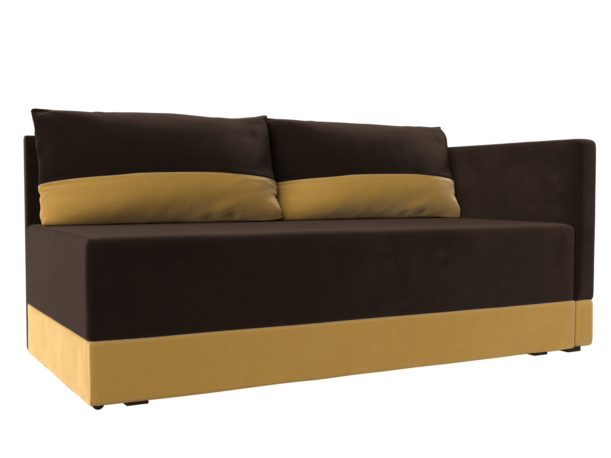 Отзывы о Столплит Кушетка Никас правая, микровельвет Коричневый/Желтый