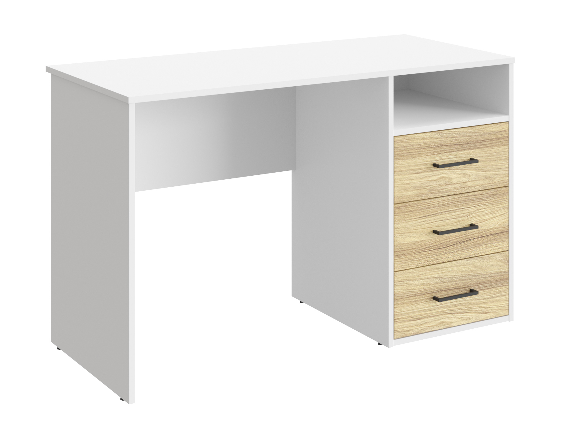 Письменный стол Оскар ОС-20 идеально подойдет для создания рабочего места в небольшом помещении. Благодаря своей универсальности стол с ящиками и нишей может использоваться как компьютерный, офисный, письменный или стол для ноутбука. С его помощью вы сможете организовать порядок на своем рабочем месте. Стол гармонично впишется в любой стиль интерьера. Современный и простой дизайн делает его идеальным для использования дома и в офисе. Свес крышки в 30 мм обеспечит прилегание к стене с любым плинтусом.
