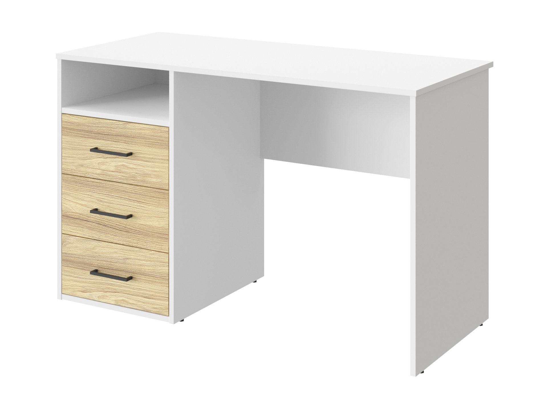Письменный стол Оскар ОС-21 идеально подойдет для создания рабочего места в небольшом помещении. Благодаря своей универсальности стол с ящиками и нишей может использоваться как компьютерный, офисный, письменный или стол для ноутбука. С его помощью вы сможете организовать порядок на своем рабочем месте. Стол гармонично впишется в любой стиль интерьера. Современный и простой дизайн делает его идеальным для использования дома и в офисе. Свес крышки в 30 мм обеспечит прилегание к стене с любым плинтусом. Фурнитура: телескопические направляющие полного выдвижения без доводчиков, ручки пластик. Регулируемые опоры позволяют компенсировать возможные неровности пола.