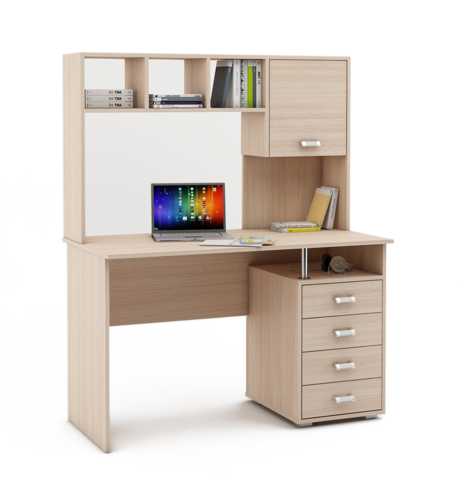 Компьютерный стол Имидж-53 состоит из большой столешницы, выдвижных ящиков и надстройки с закрытыми и открытыми нишами, превращаясь тем самым в полноценное рабочее место в офисе или функциональное место для школьника в детской комнате. На столе хватит места для ноутбука и компьютера, а открытые полки можно использовать для книг, канцелярии или документов. Верхнюю полку можно использовать в качестве подставки под принтер, а системный блок поставить под стол.