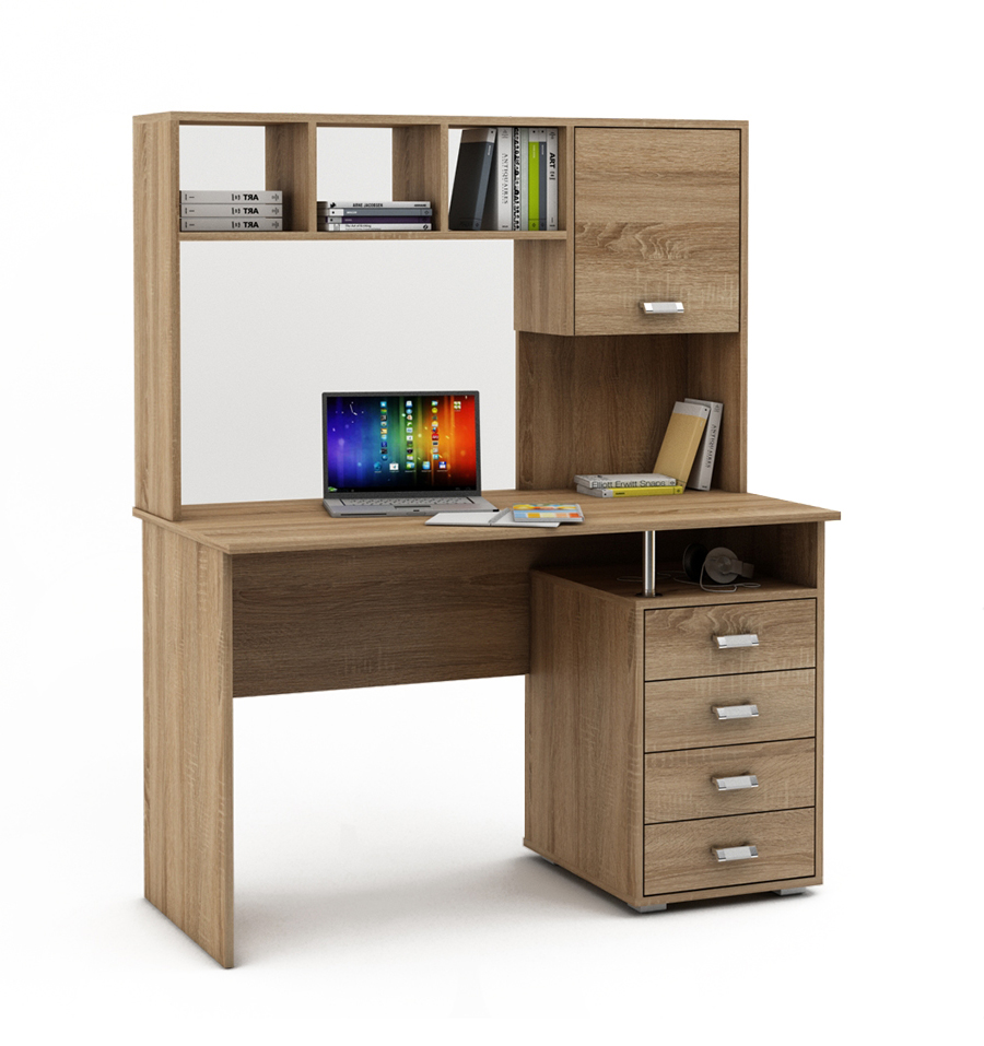 Компьютерный стол Имидж-53 состоит из большой столешницы, выдвижных ящиков и надстройки с закрытыми и открытыми нишами, превращаясь тем самым в полноценное рабочее место в офисе или функциональное место для школьника в детской комнате. На столе хватит места для ноутбука и компьютера, а открытые полки можно использовать для книг, канцелярии или документов. Верхнюю полку можно использовать в качестве подставки под принтер, а системный блок поставить под стол.