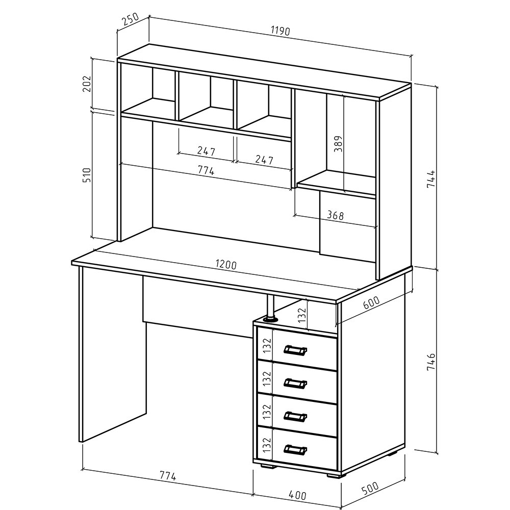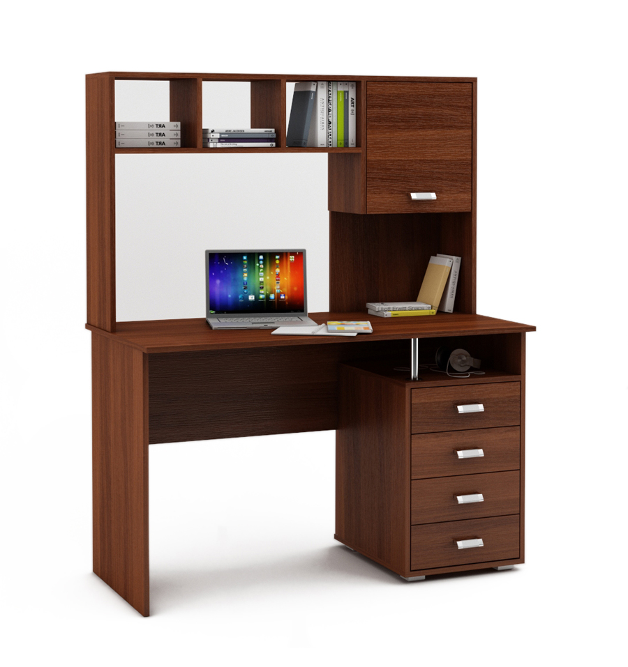 Компьютерный стол Имидж-53 состоит из большой столешницы, выдвижных ящиков и надстройки с закрытыми и открытыми нишами, превращаясь тем самым в полноценное рабочее место в офисе или функциональное место для школьника в детской комнате. На столе хватит места для ноутбука и компьютера, а открытые полки можно использовать для книг, канцелярии или документов. Верхнюю полку можно использовать в качестве подставки под принтер, а системный блок поставить под стол.
